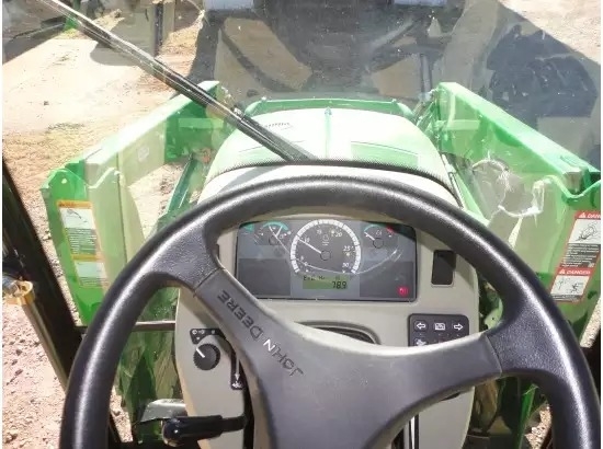 This 2014 John Deere 4044R Compact Tractor has a Yanmar 3 cylinder, 44 hp, diesel engine with a e-Hydro 3 speed transmission in it. It has only 78 hours on it. It still smells new inside the cab!