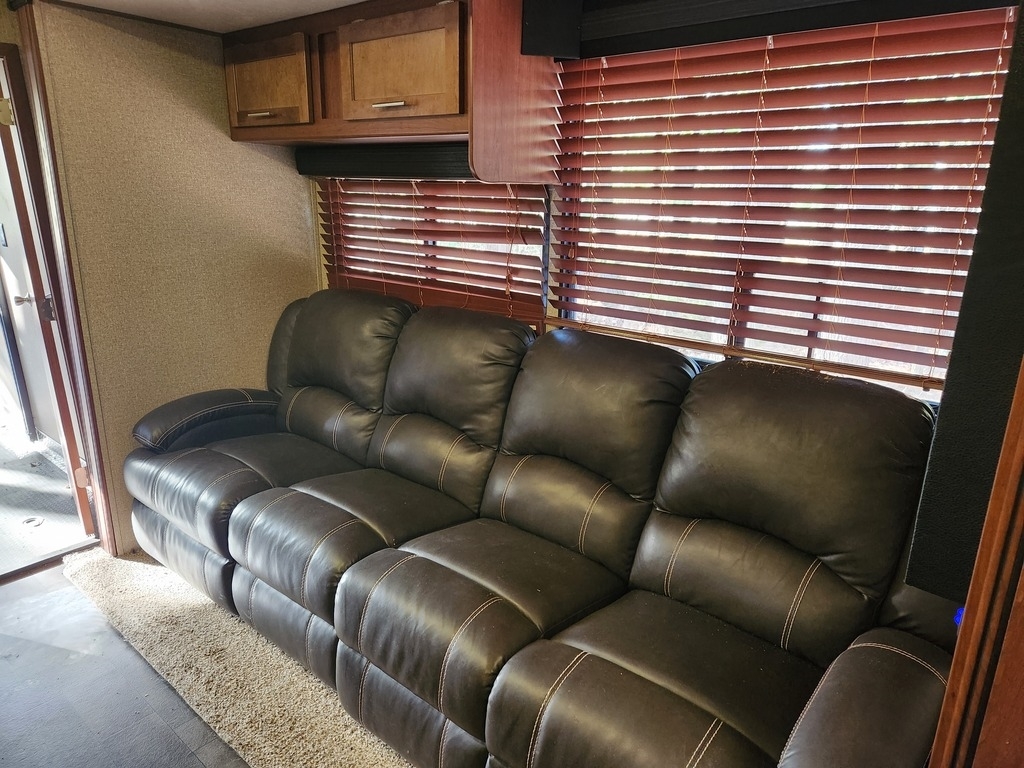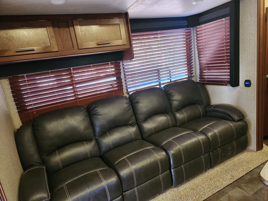 This Forest River has an overall length of 37ft and comes equipped with 1 power slide-outs, 1 awning, and 1 A/C unit. Plenty of room to sleep 6. This unit has been well-maintained.