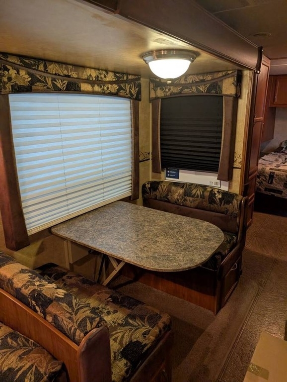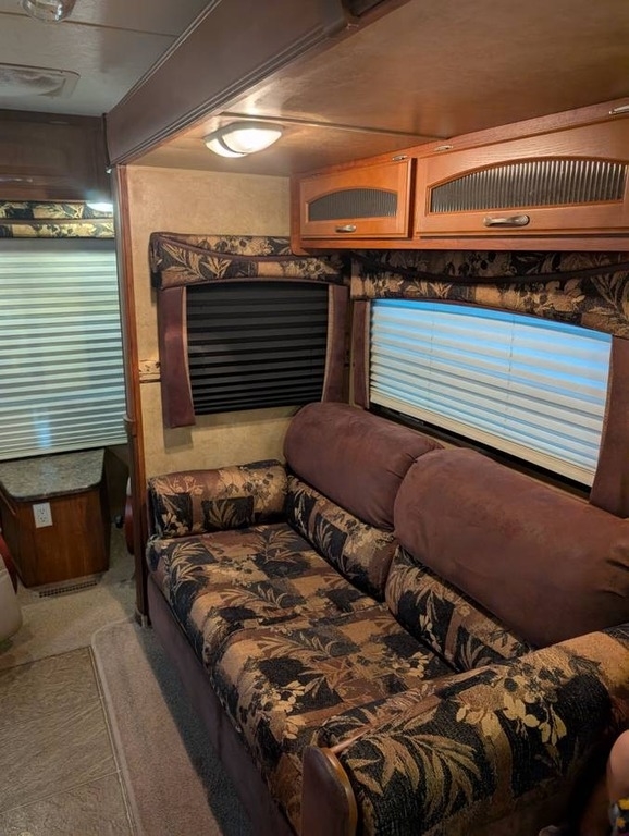 Living Area: 2 Cloth Recliners, Sofa Bed, Booth Dinette Bed Conversion, TV and DVD Player.