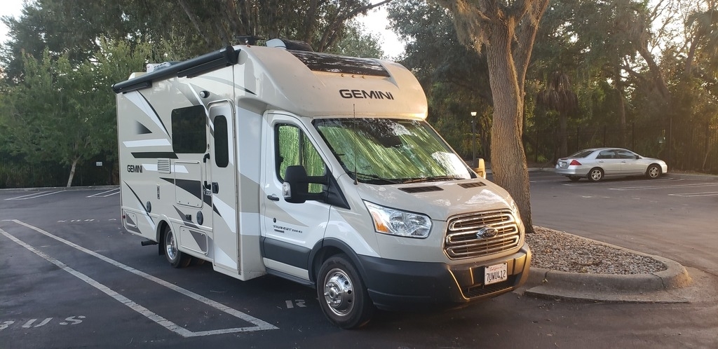 This 2021 Class C is powered by a V6 Diesel Engine combined with a 5 Speed Automatic Transmission with 41,000 Miles, Driven on a Mercedes Benz Sprinter Chassis. The overall length is 23.5 feet and comes equipped with an Onan 3.5 KW Generator, 1 Slide, 1 Awning, 1 A/C unit and plenty of room to sleep 4.