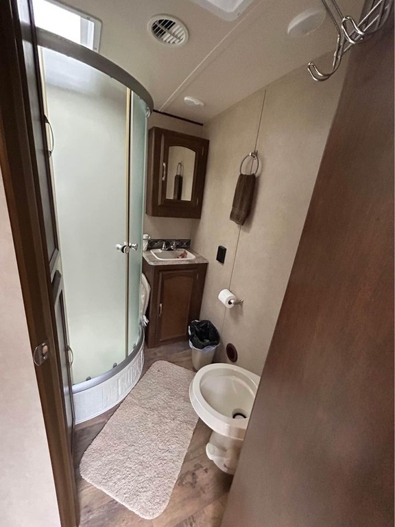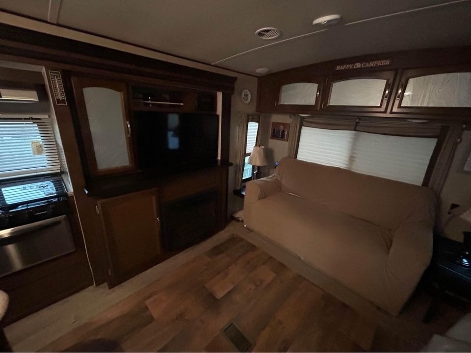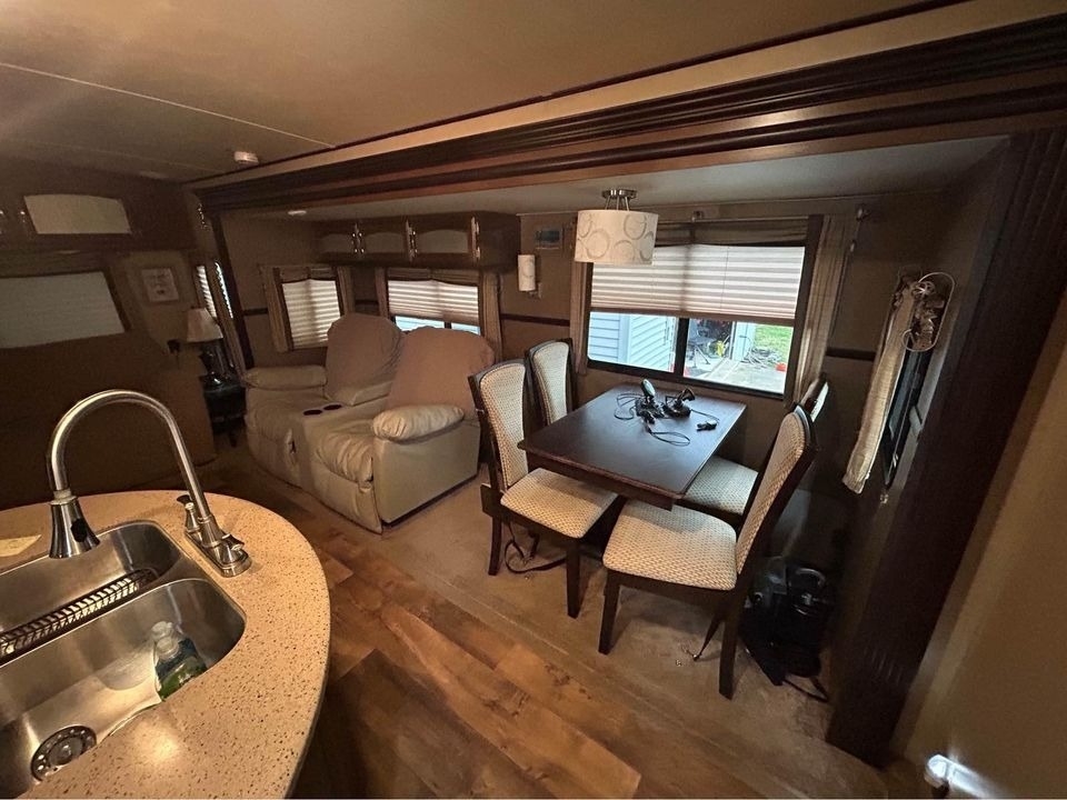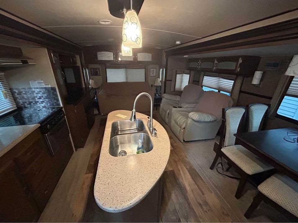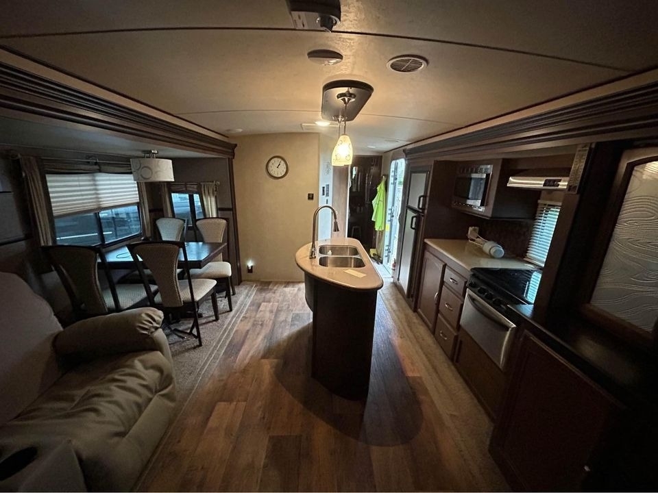 This Forest River has an overall length of 34.33 feet and comes