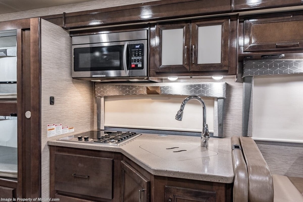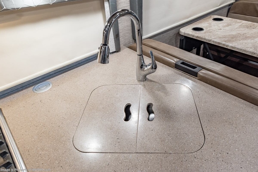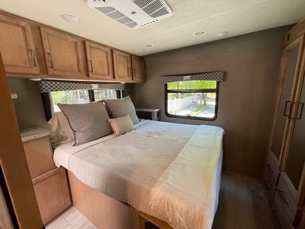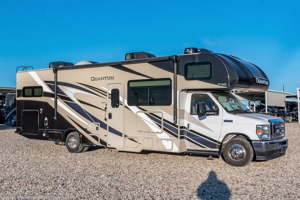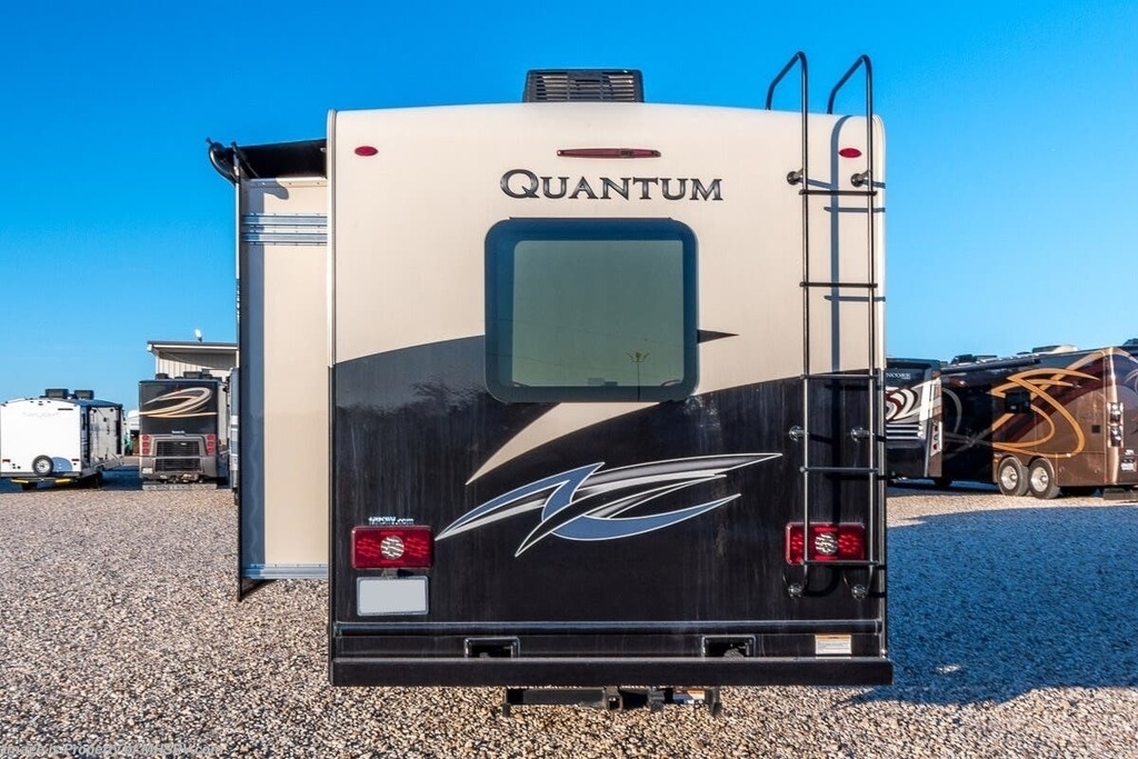 This Quantum is powered by a Triton V8 engine paired with a TorqShift 6-Speed Automatic transmission with 6,000 Miles. The overall length is 32’ and it comes equipped with 1 Generator, 1 Slide Out, 1 Awning, 2 AC Units and room to Sleep 8.