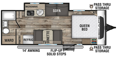 length of 25.17 ft and comes equipped with 1 power slide-out, 1 awning, and 1 A/C