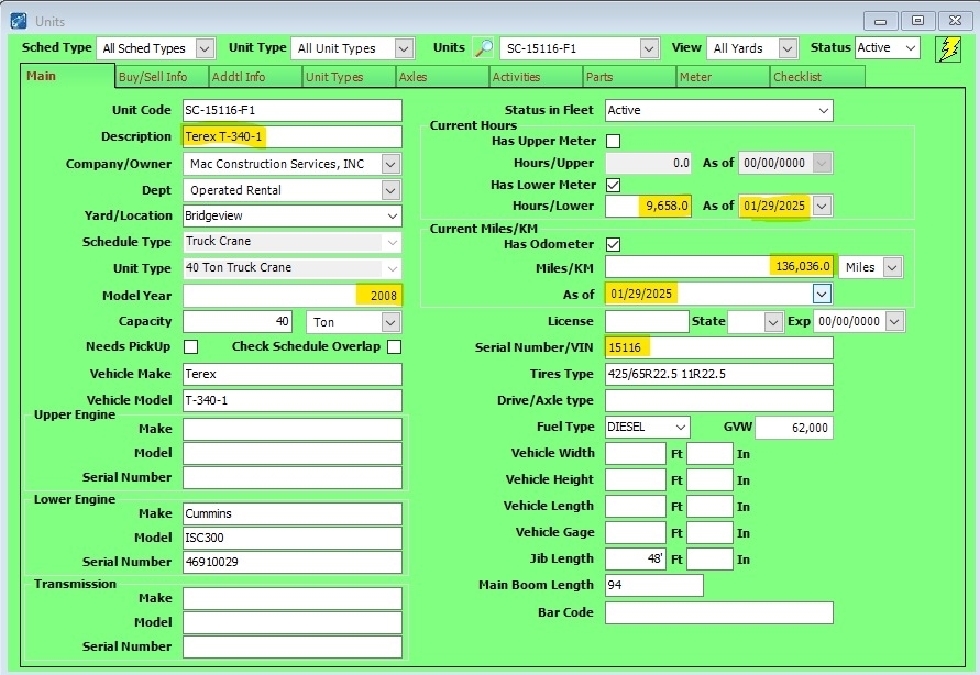 “30 - 94' full power boom. 32 - 49' swing-away jib, block and ball. Cummins ISC300 diesel engine. 9,658 lower meter hours. Well maintained, regularly serviced.”