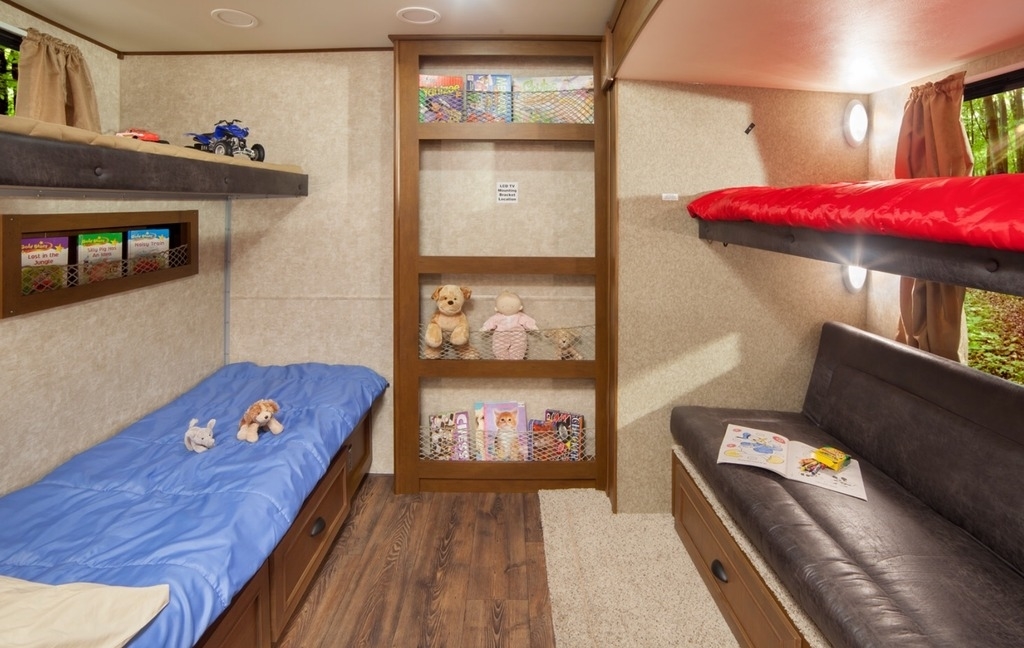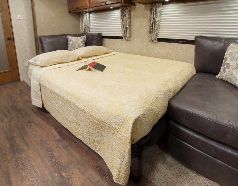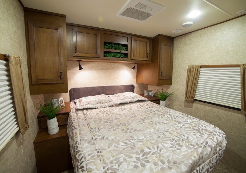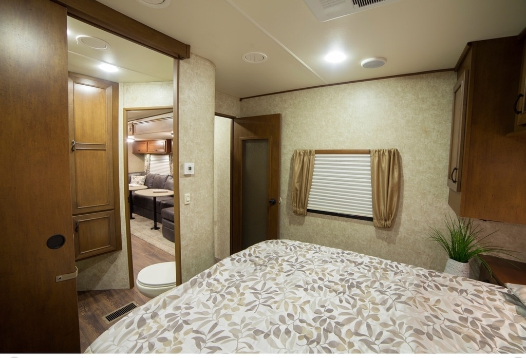 Trailer overall length is 36 feet and comes equipped with a Queen Size Bed. Featuring
