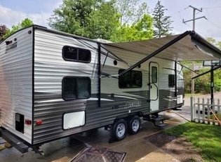 equipped with 1 power retractable awning with LED lighting, A/C, and plenty of