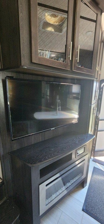 This Thunderbolt has an overall length of 43 feet and comes equipped with 2 power-retractable slide-outs, 3 power-retractable awnings, 2 A/C units, a generator, a 14-foot garage, a fireplace, and plenty of room to sleep up to 7. This unit has been well-maintained.