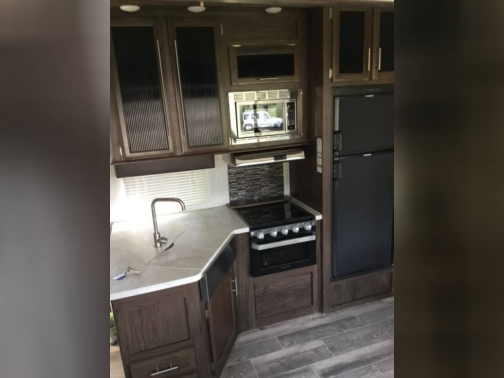 This Forest River is like new and barely used! The Over all Length is 36’ and it comes equipped with 3 Slide Outs, 1 Awning, 2 AC Units, and Plenty of Room to Sleep 8.