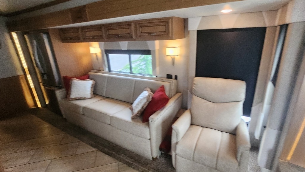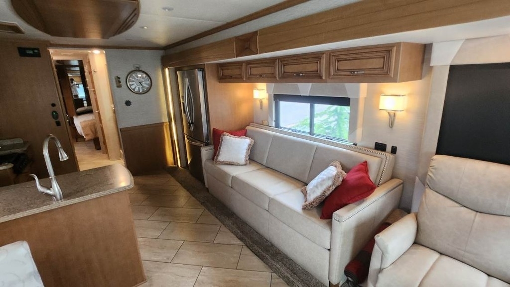 This Newmar is powered by a 6.7L I6 diesel engine and an automatic 6-speed transmission with 32,922 miles. The overall length is 40.83 feet and it comes equipped with 4 power retractable slide-outs, 1 power retractable awning, and plenty of room to sleep 4. This unit has been well-maintained.