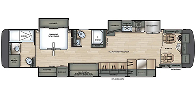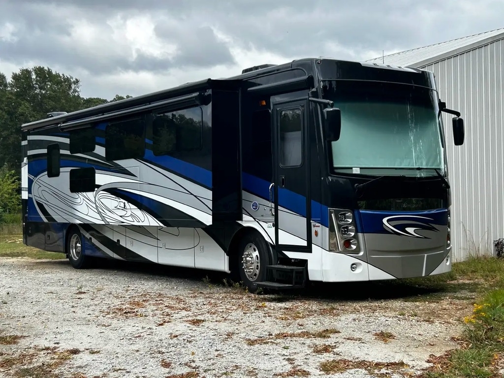 This Forest River is powered by an 8.9L I6 diesel engine and a 6-speed automatic transmission with 2,975 miles. The overall length is 41 feet, and it comes equipped with 3 power-retractable slide-outs, an 18-foot power awning, 3 A/C units, a generator, 2 full bathrooms, bunk beds, a fireplace, an outdoor entertainment system, and room to sleep up to 9. This all-electric unit has been well-maintained and comes with an exclusionary warranty.