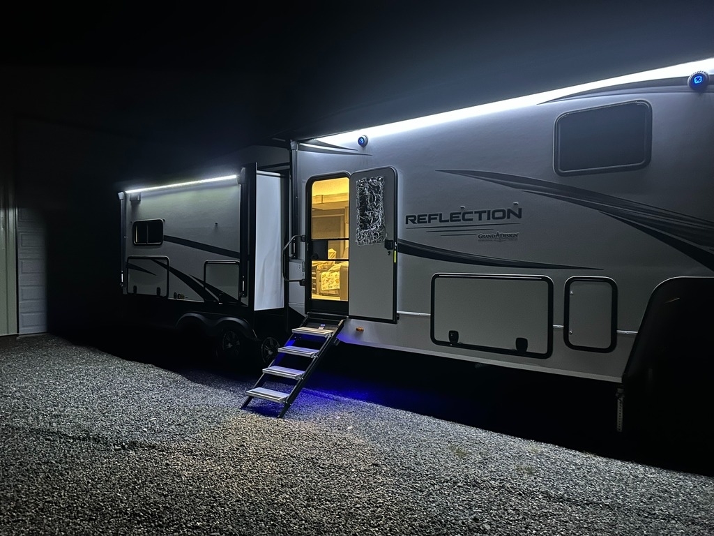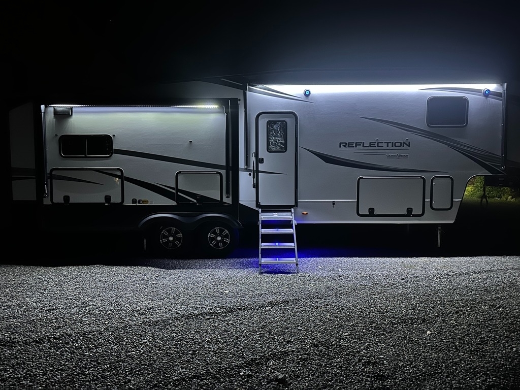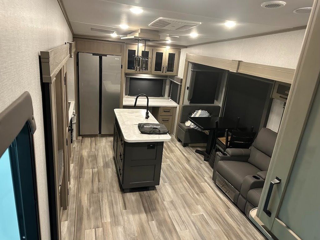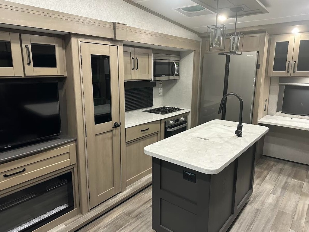 “For sale is my 2023 Grand Design Reflection 320MKS Fifth Wheel, in excellent condition inside and out. This coach has been meticulously cared for and has always been stored under cover when not in use. The 320MKS combines luxury, comfort, and functionality, featuring a spacious rear kitchen with solid-surface countertops, residential-style appliances, and plenty of storage. The middle living area includes theater seating, a tri-fold sofa, a large TV, and a cozy fireplace, making it perfect for relaxing or entertaining. Up front, you’ll find a private bedroom with a queen bed and wardrobe slide, along with a large bathroom featuring a residential-style shower and vanity. Additional highlights include an outdoor kitchen and TV, power awning, auto-leveling system, and a heated, enclosed underbelly for four-season camping. It’s also equipped with washer/dryer prep, dual A/C units, and upgraded insulation for year-round comfort. This Reflection has never been smoked in, and everything works perfectly. It’s road-ready, feels like new, and is a great opportunity to save thousands compared to buying from a dealer.”