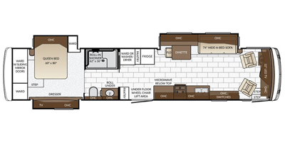 wheelchair accommodations, 3 Slide Outs, Power Awning, Generator, AC and Room