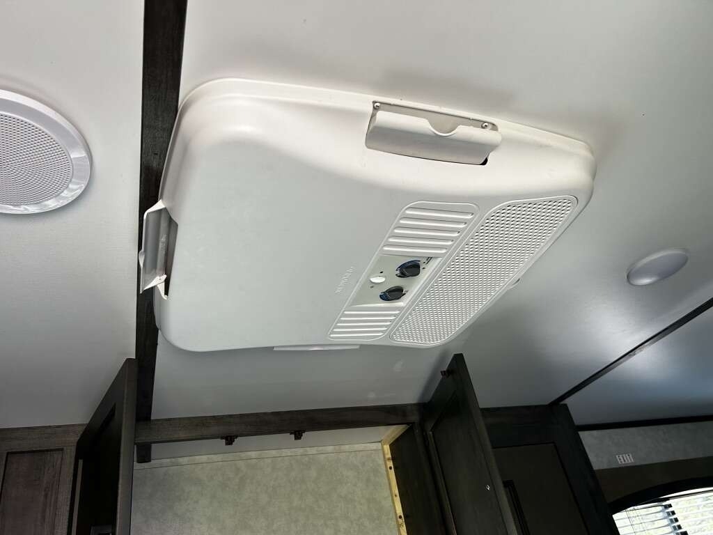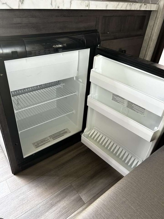 and a gas/electric fridge. For climate control, there’s a rooftop A/C and