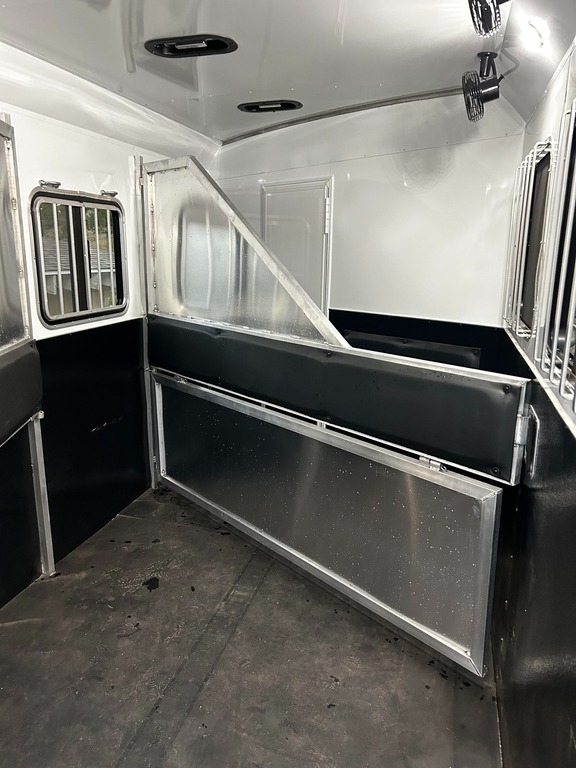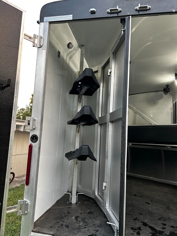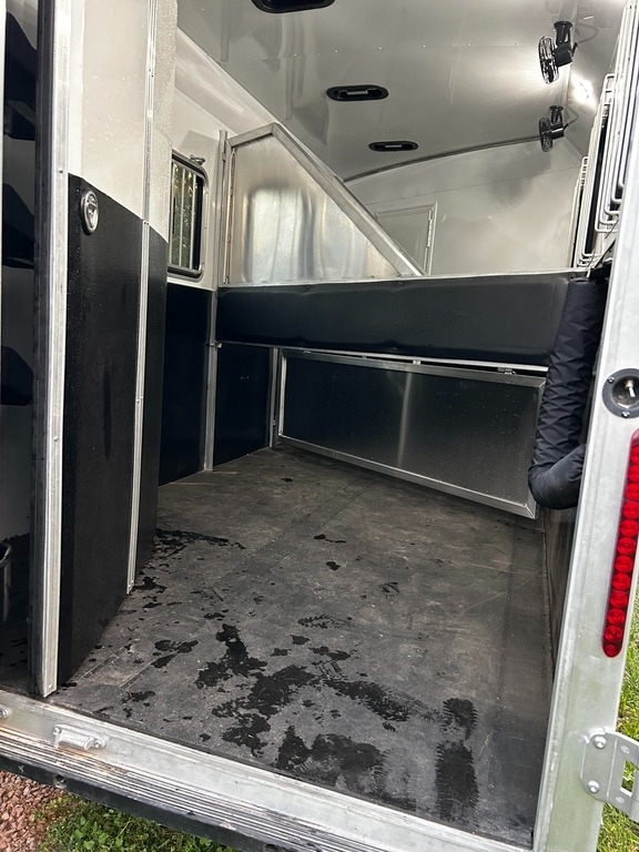 an all-aluminum, barely-used trailer that has never had horses inside. It’s in