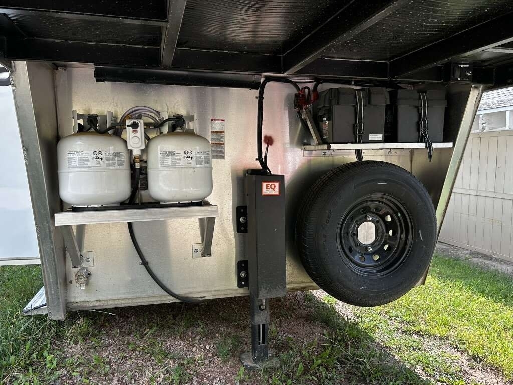 include 2 propane tanks, a spare tire, and an electric jack at the front,
