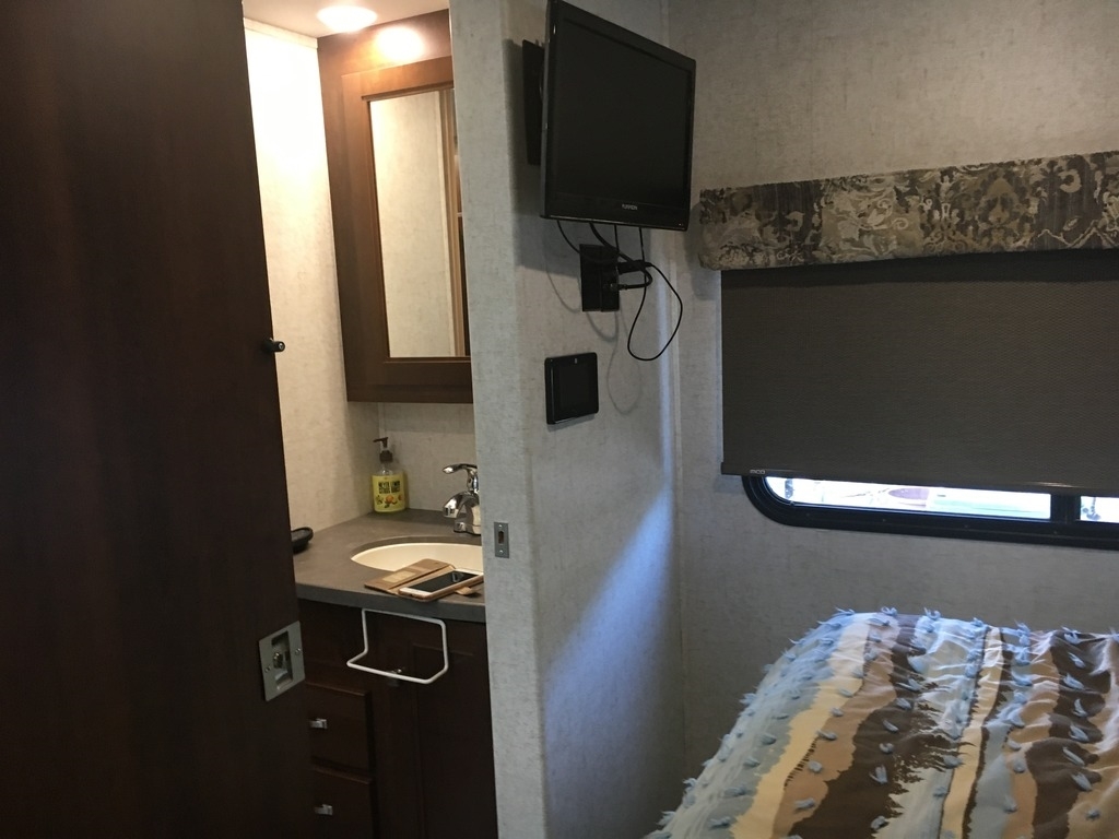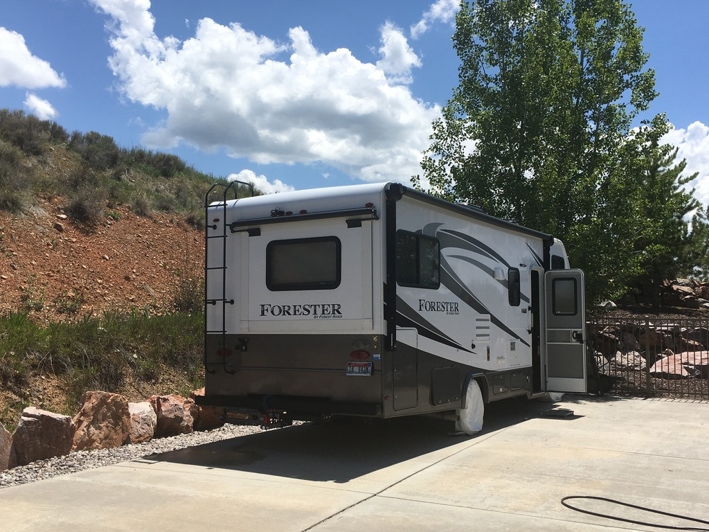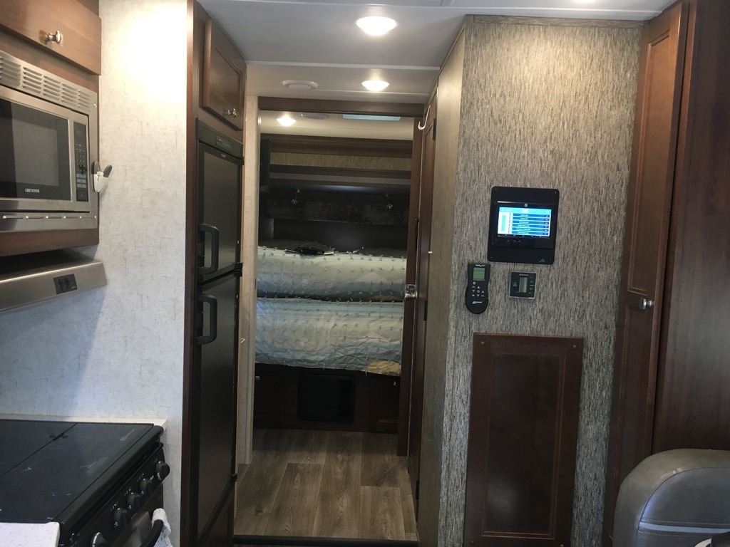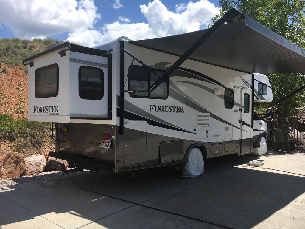This Class C comes with the Forester Premium Camping Package: Smart phone in coach remote system, Stainless steel appliances, Heated Remote Exterior mirrors, Backup camera/side view cameras w/monitor in dash, Pioneer Sound System, Outside Speakers, Slide Room Toppers, Ultra Leather Driver/Passenger seating, Cab-over Bunk with Safety Net, Waste Master System, Painted Skirt w/partial graphics & Fiberglass Running boards, 15k btu AC w/Heat Pump.