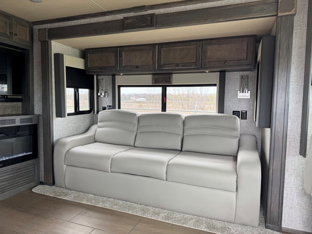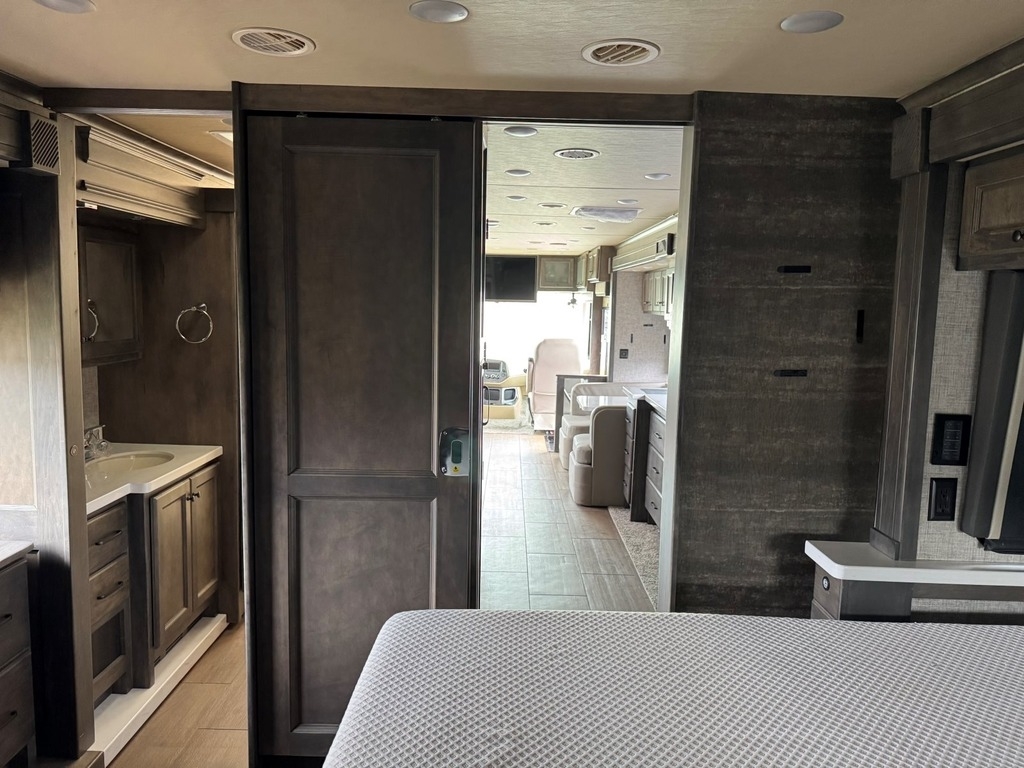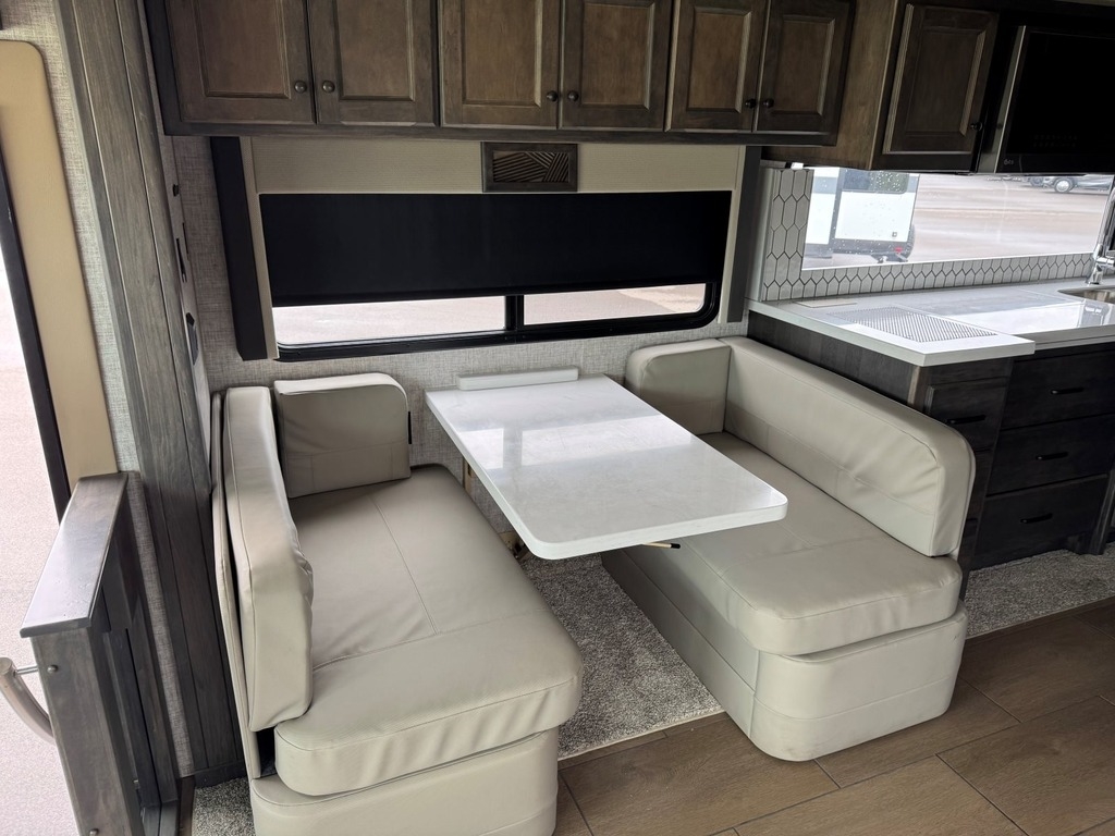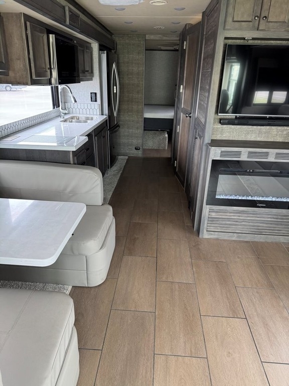 This Tiffin is powered by a 7.3L V8 engine and a 6-speed automatic transmission with 7,300 miles. The overall length is 36.08 feet and comes equipped with 4 power retractable slide-outs, 1 power retractable awning, 2 A/C units, a generator, outdoor entertainment, and plenty of room to sleep 7. This unit has been well-maintained.