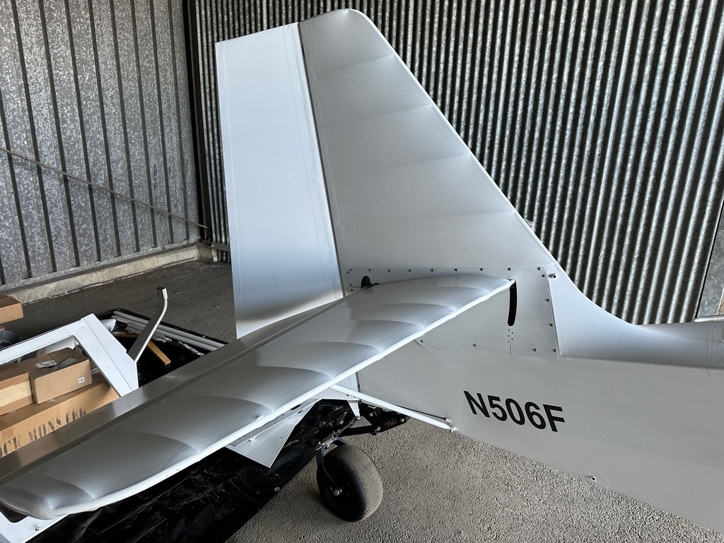 The airframe includes recently installed bubble-style doors along with the larger elevator and rudder.