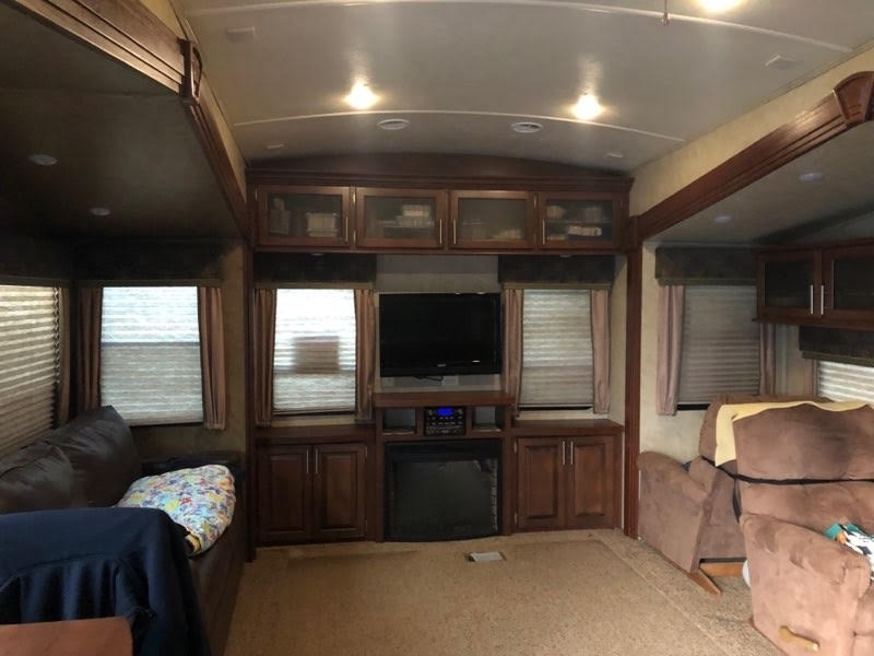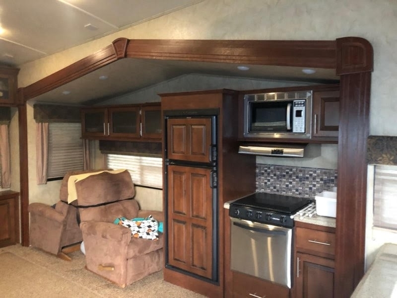 is 29 feet and comes equipped with a Queen Size Bed, has 3 Slide Outs and