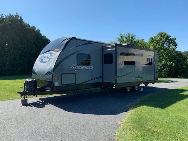 This 2014 Dutchmen Aerolite has an Overall Length of 32’ and Comes Equipped with a Slide Out, an Awning and Sleeps 12. It is Shown in a Grey Exterior with Decals and a Tan/Beige Interior. It is a Non-Smoking Travel Trailer and has Not Been in any Accidents or has Any Water Damage. 2nd Owner, Only Used Once!
