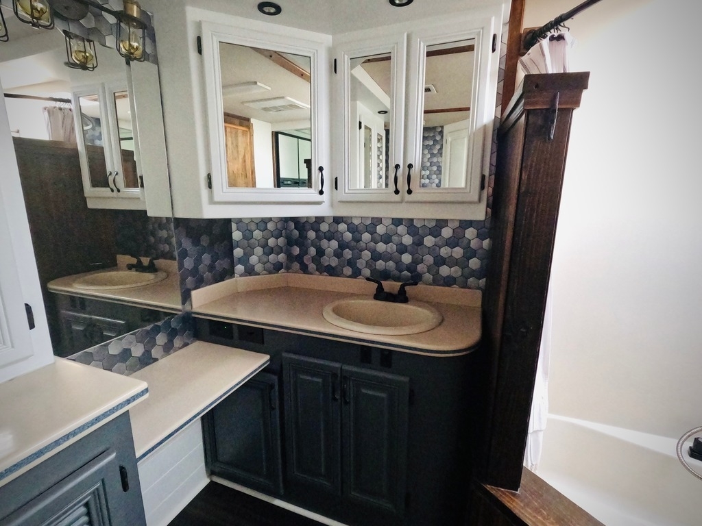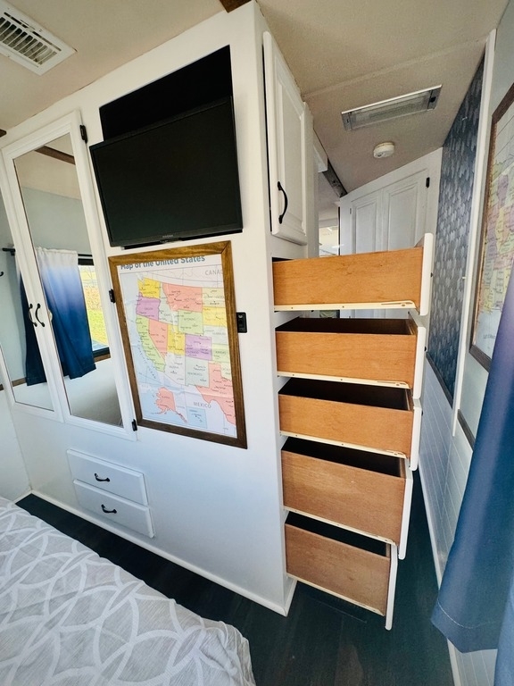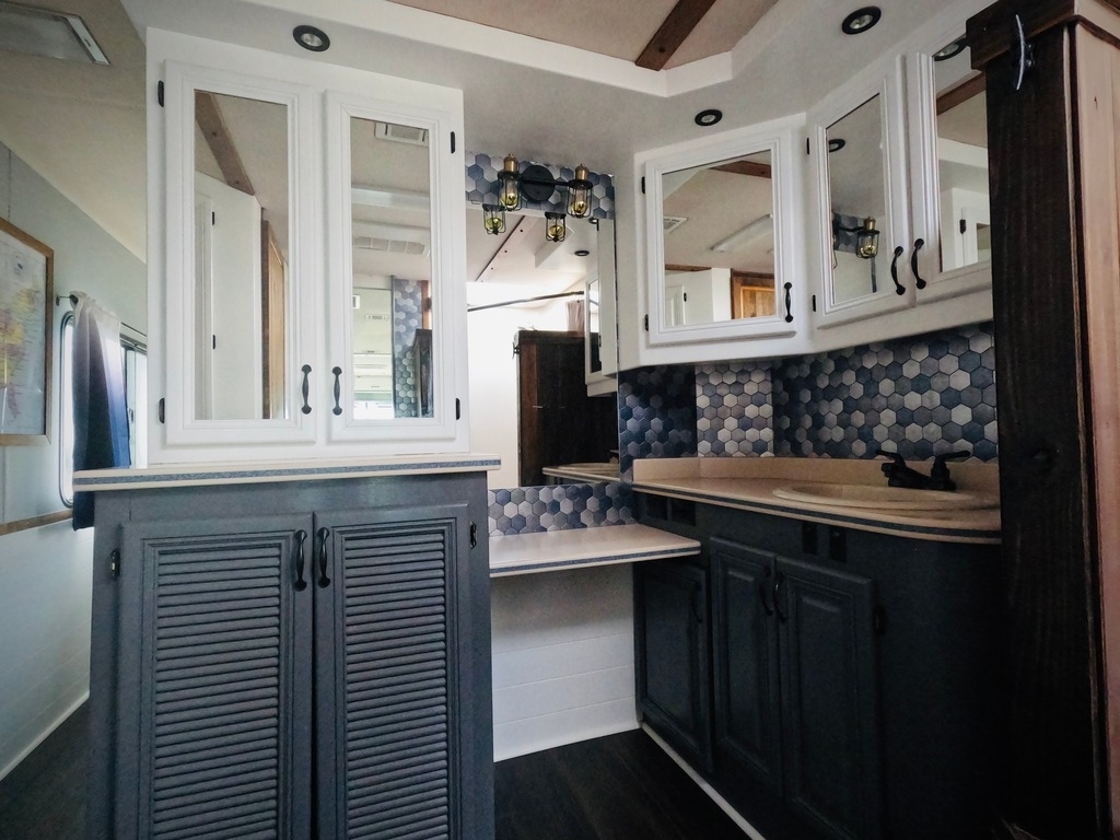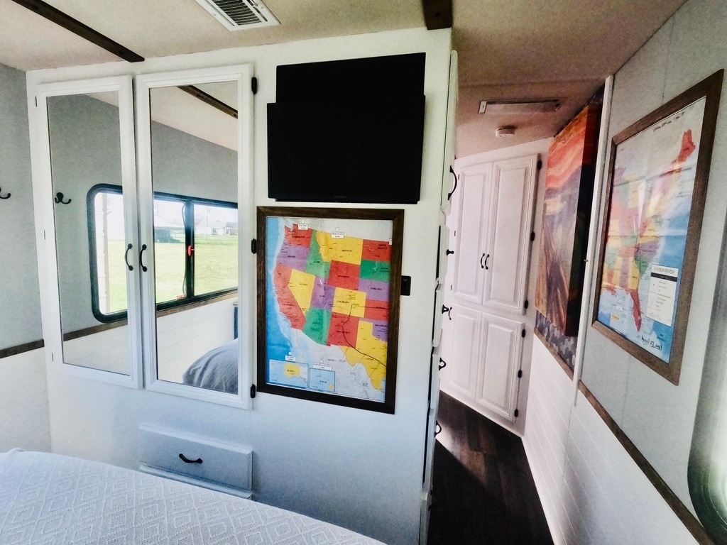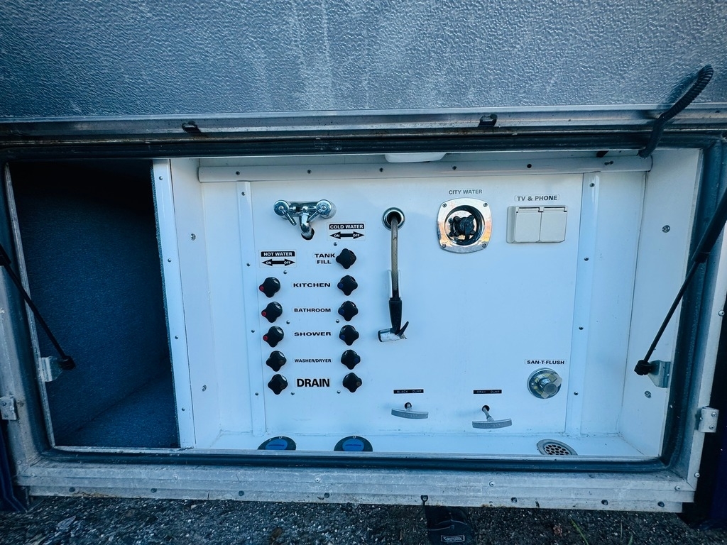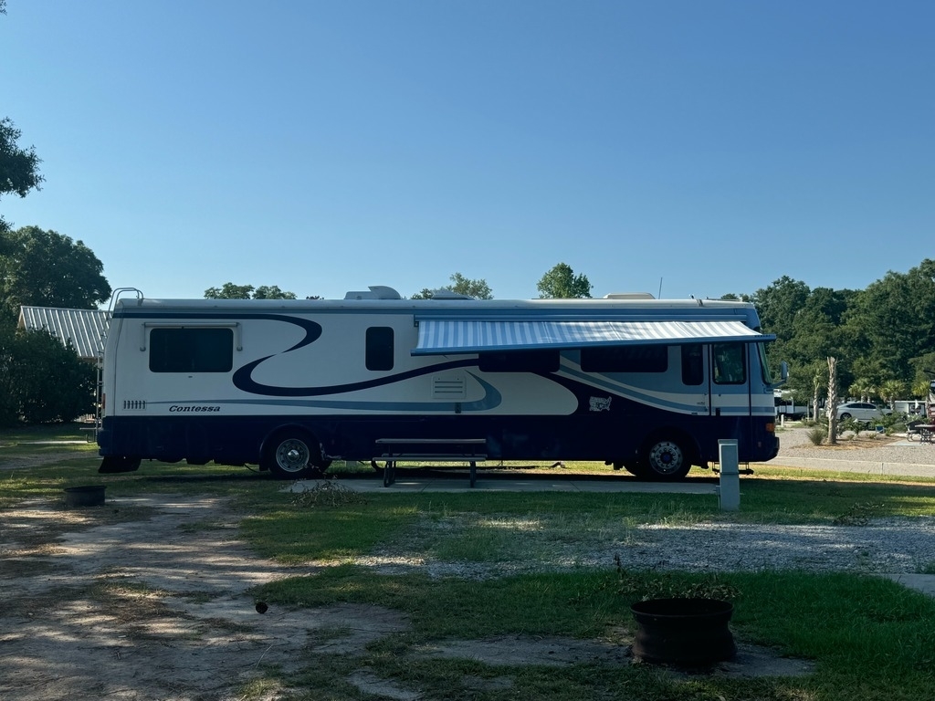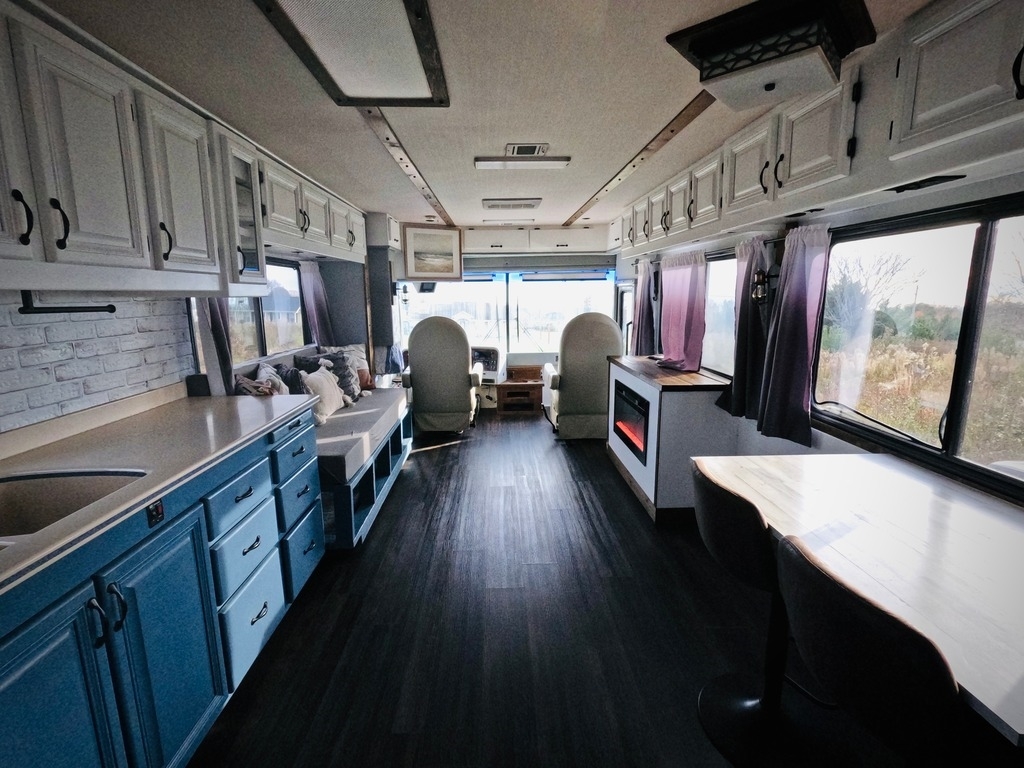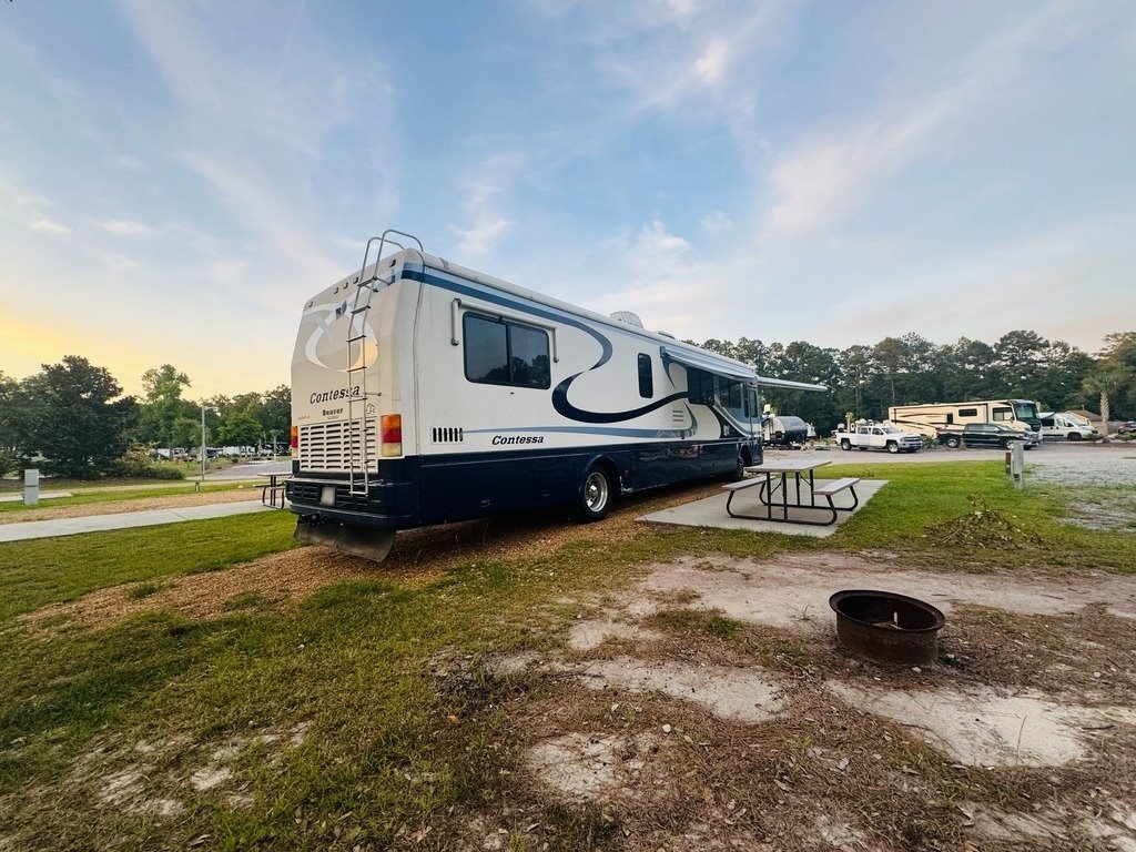 ‘Lady Blue’ Come check out our beautifully crafted 1999 Beaver Contessa Naples Edition! She is a Class A-Absolute Beauty coming in at 41.5 feet with an 18 feet full slide on the driver’s side. Lady Blue, as we so lovingly call her, has been ours for 3 years and in that time she’s taken us through so many amazing adventures throughout the country. We will undoubtedly miss her but we’ve decided to go a different route in our travels. We’ve given her a lot of love in the short time we’ve had her. Lady Blue has had a full interior renovation - Farmhouse style! We got rid of all that drab carpet and went with a waterproof, luxury, vinyl plank flooring throughout the coach. To spruce up the space, we installed new Shade of Light fixtures as well as updated all new sink and tub fixtures. An electric fireplace was the perfect, little cozy addition. We really tied in that Farmhouse look by installing shiplap throughout, adding an exposed, white washed brick (vinyl tile) in the kitchen and finally, using Magnolia’s superior paints to really bring it all together. Throughout the coach, the unparalleled craftsmanship can be observed in the real oak cabinetry, doors & accents. We custom-built three pieces - a large couch, shower & a tool storage space with shelving and outlets. The couch was designed to provide plenty of additional storage plus oversized cushions to really stretch out to. This also turns into a single mattress for other guests. The garden tub with cedar planks provides the perfect oasis to refresh and relax. The motor is a Caterpillar 3126B with 72,682 miles, an Allison 6-speed automatic transmission and she has a Magnum Chassis. Here’s a list of mechanical updates completed: • New Victron 12/3000/120V inverter with dongle replaced 02/2024 $1500 • Oil filter and oil change at 69,757 miles • 11/2024 - Replaced all 4 6V House batteries $675 • 10/2024 Replaced both 12V Chassis Batteries $350 • Alternator 555 Replaced • Fuel Filter CFI 86411 Replaced • Fuel Filter CFI 86626 Replaced • Battery Isolator Switch Replaced • Radiator Cap Replaced • Replaced Coolant Line • Replaced Air Filter • Replaced Coolant Hose • Replaced Thermostat • Replaced 2 engine sensors • 220 electrical fuse blocks replaced • New push rod and injector • Water pump Replaced • 2 Safe T Alert Classic Propane Alarms Updated • Generator has new oil change • New SmartTV • 4 new GFCI outlets installed • New wiper blades - Main power fuse replaced in VIM • Brand new starter stored in basement $350 (not included but optional took almost 2 weeks to locate) All repair records have been meticulously kept and are stored within Lady Blue. *Blue Ox Tow package available if interested to purchase separately.