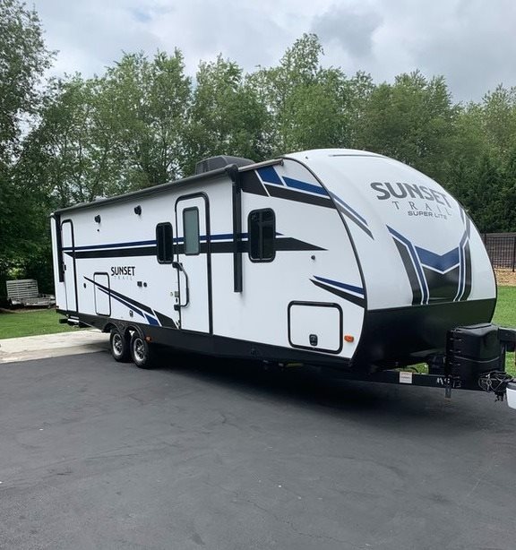 This 2021 CrossRoads Sunset Trail Super Lite SS272BH Travel Trailer is 31’ long and comes equipped with a slide out, a patio awning, an air conditioning unit, and can sleep 10 people comfortably.