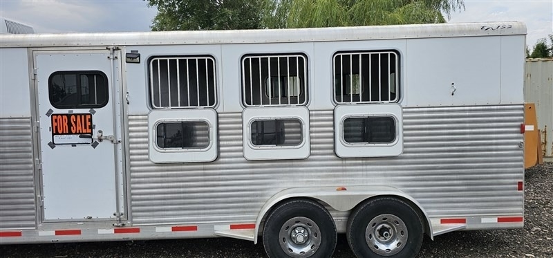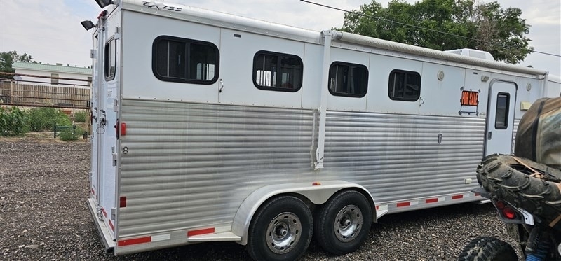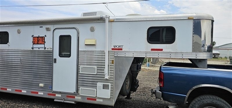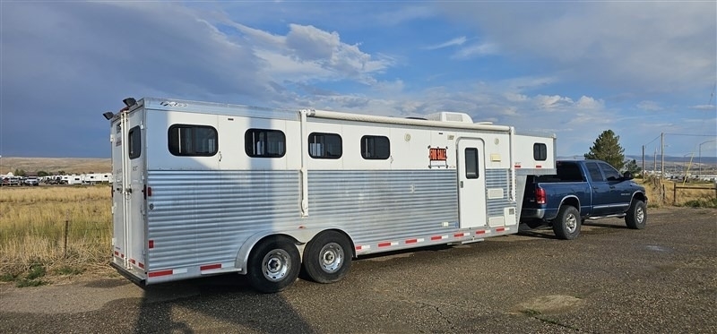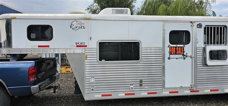 “2007 Exiss Sport 407 Horse Trailer with Living Quarters, a well-maintained trailer, perfect for equestrian enthusiasts. This versatile trailer can accommodate up to four horses and features a convenient gooseneck pull type. The living quarters (LQ) include an 8.5-foot shortwall, making it comfortable for both you and your horses. Key features include a stud stall, dividers, drop-down windows, and a rear collapsible tack area. The living quarters are equipped with essential amenities such as a furnace, air conditioning, a microwave, stovetop, shower, and toilet, all accessible through a pass-through door. The trailer is in great shape and comes with new tires and an awning for added convenience. Measuring 32 feet in length, this Exiss Sport 407 is ready for the next adventure. Don’t miss the opportunity to own a reliable and comfortable horse trailer that’s perfect for weekends at the show or long trips on the road!”
