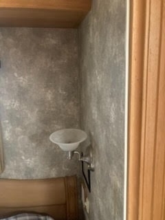 a king-size bed with added reading lights, a replaced toilet that sits slightly