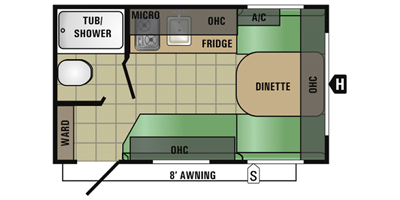 This 2017 StarCraft has an overall length of 16 feet and comes equipped with 1 Electric Awning, 1 A/C unit, and plenty of room to sleep 2.