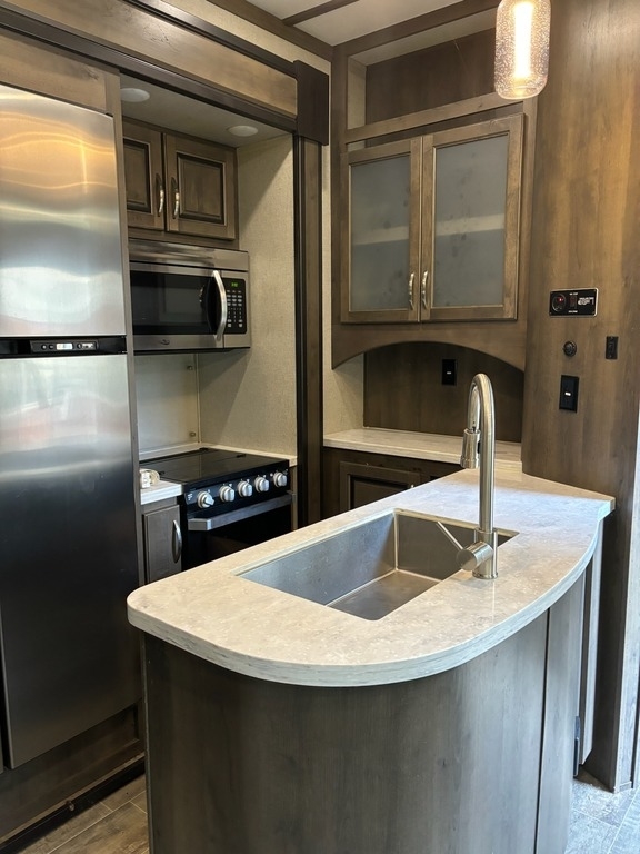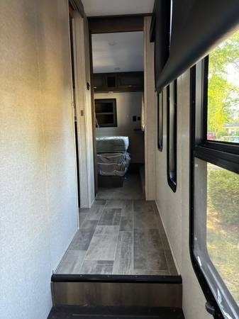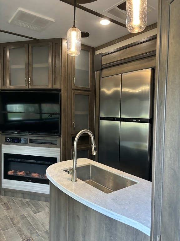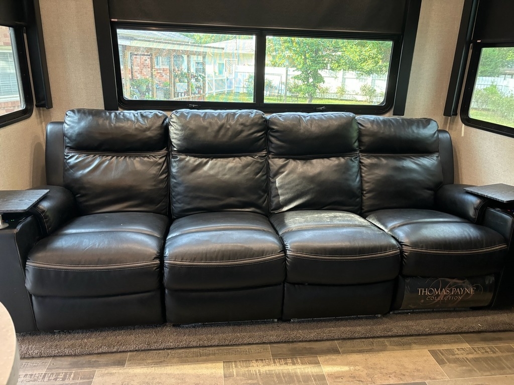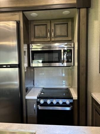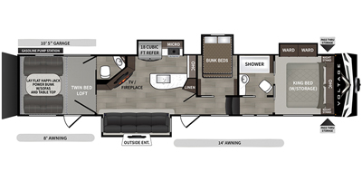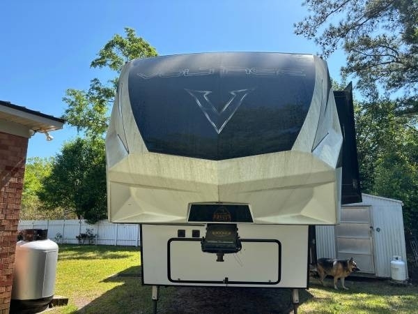 This 2020 Dutchmen Voltage 4205 Toy Hauler has a overall length of 43.9 feet with a 13 Foot Garage. Comes equipped with an All Weather Package, 5.5 KW ONAN Gas Generator, 4 Slide Outs, 3 Awnings, 3 A/C units and has plenty of room to sleep 11. This Toy Hauler is non-pet/non-smoking.