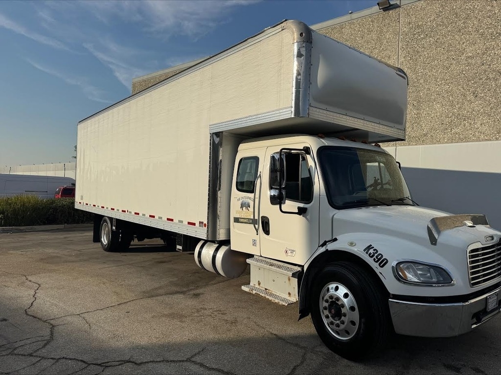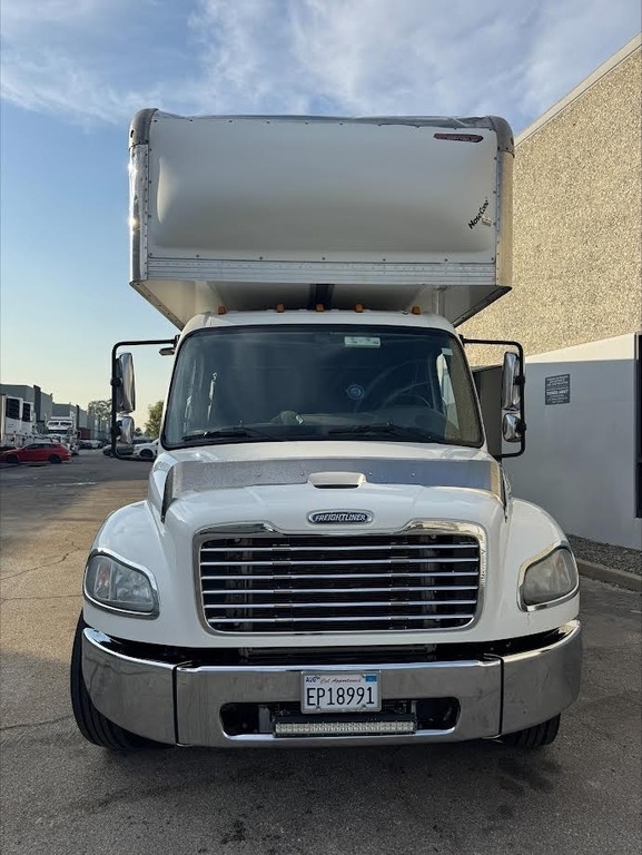 What sets this M2 106 apart is its 132-inch BBC high-roof extended aluminum conventional cab configuration, which includes a practical living space with a twin bed behind the seats and convenient storage cabinet underneath. This setup makes it ideal for long-distance drivers needing rest accommodation without sacrificing cargo space. 28ft Box and is rated for 26,000lbs.
