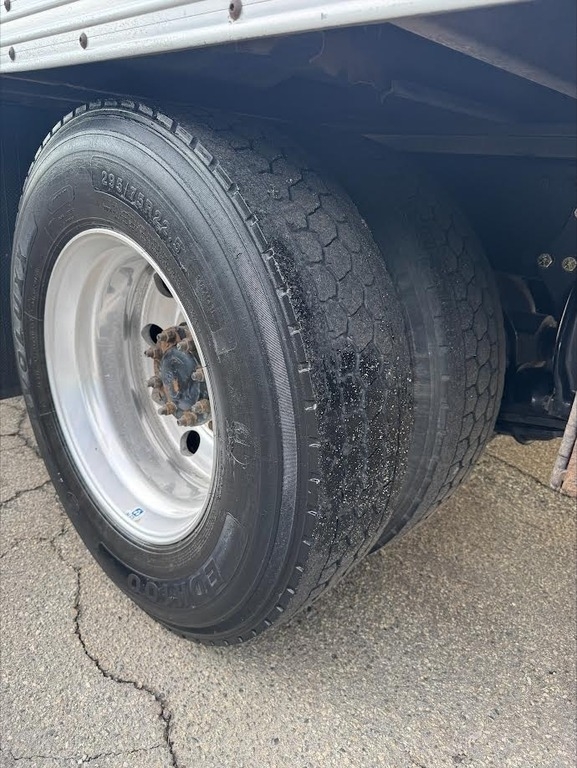 The truck features dual 60-gallon aluminum fuel tanks (227 liters each), providing excellent range for long-haul operations. It rides on premium 295/75R22.5 14-ply tires, offering durability and stability for heavy loads.