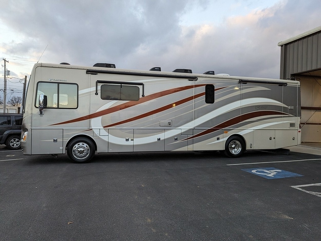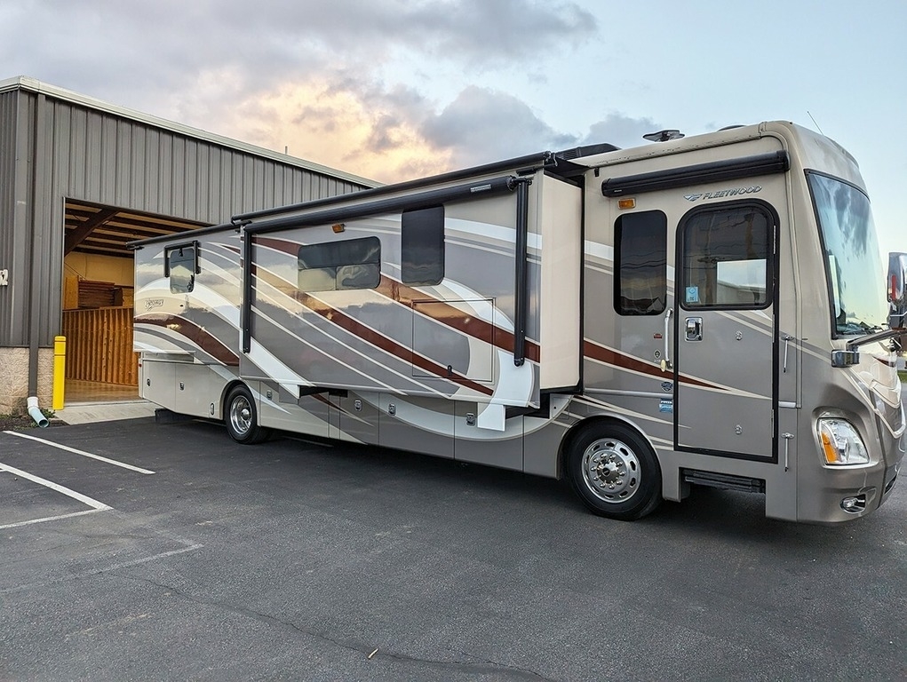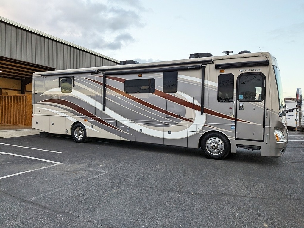 This Fleetwood Discovery is powered by a Cummins 13L diesel engine and a 6-speed automatic transmission with 29,615 miles. The overall length is 37 feet and it comes equipped with a generator, 4 slide-outs, 1 awning, and 2 AC units. With only 1 Owner this unit has been garage-kept.