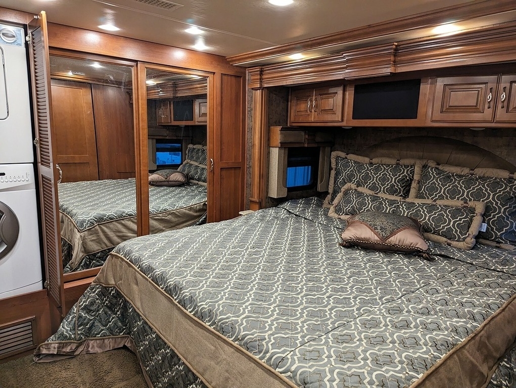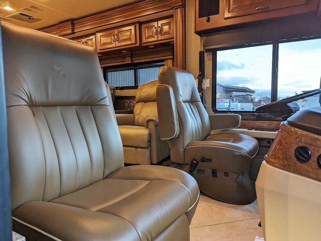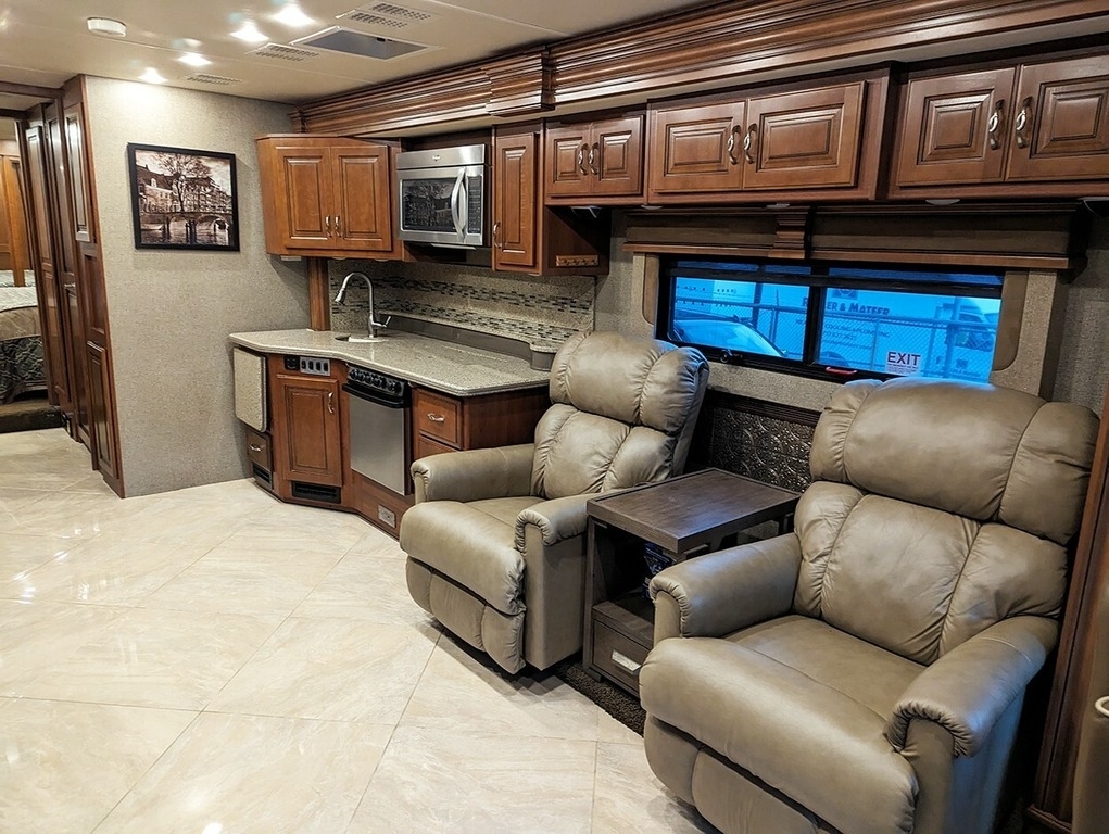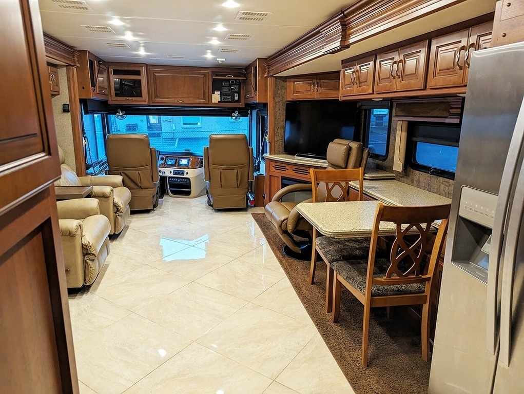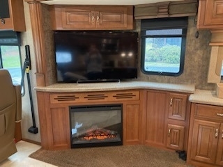 “This garage-kept coach is in excellent condition! Low mileage! Brand new tires. 6 house batteries (installed January 2023). Current PA inspection (November 2024). Super steer equipped. Large underbelly storage. Generator. Outdoor TV. Inside this comfortable coach is a lovely fireplace with large screen TV, two new leather lazy boy recliners, king size bed, washer & dryer, central and central vac.”