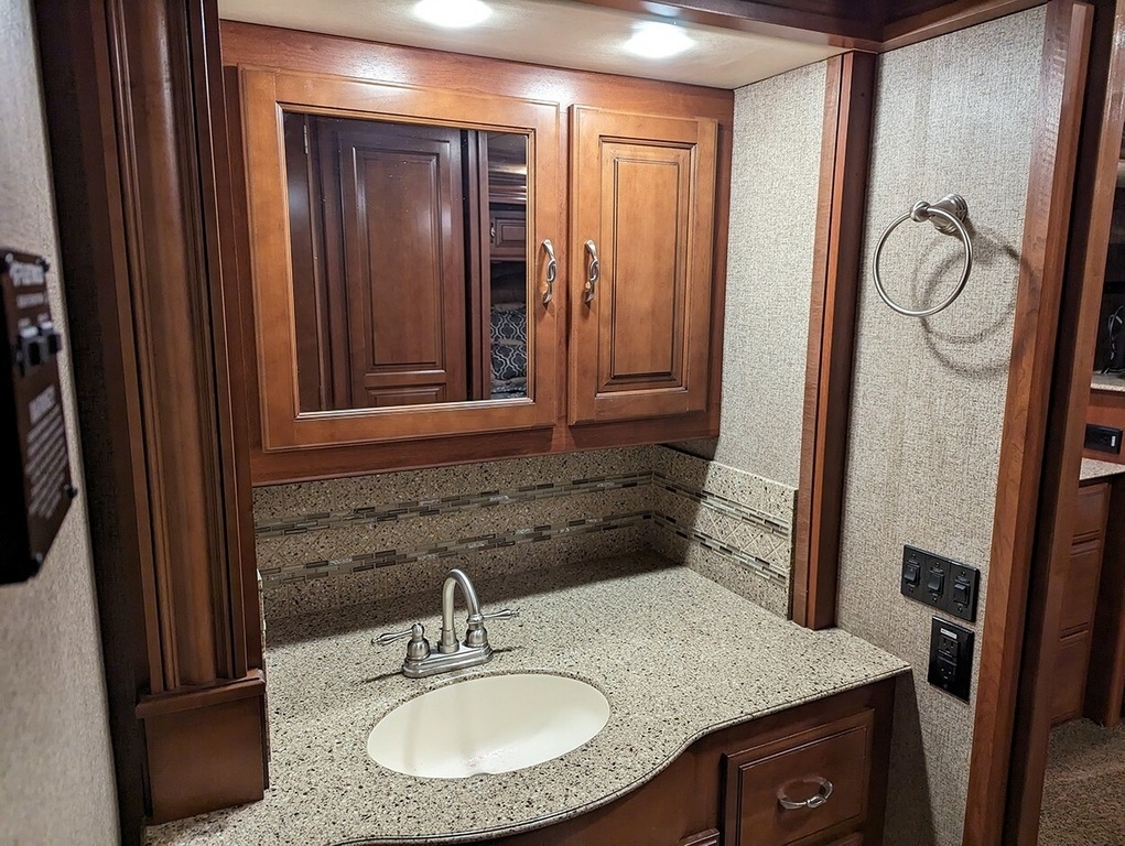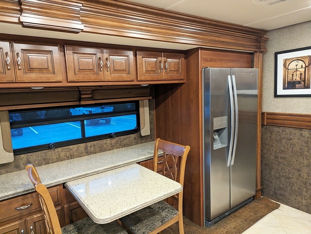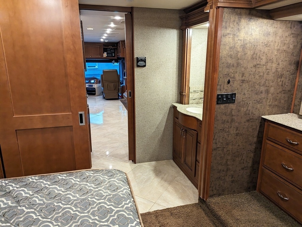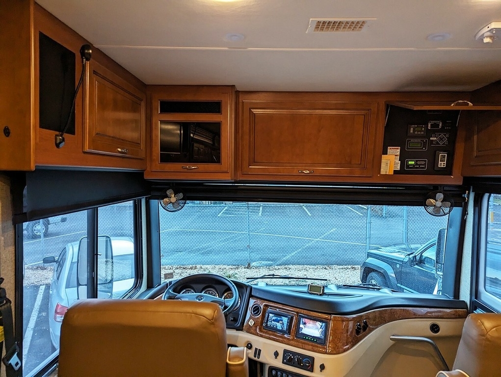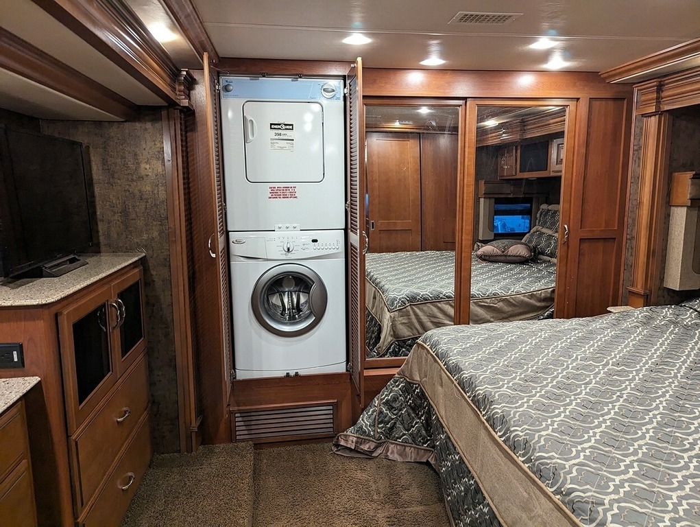 “This garage-kept coach is in excellent condition! Low mileage! Brand new tires. 6 house batteries (installed January 2023). Current PA inspection (November 2024). Super steer equipped. Large underbelly storage. Generator. Outdoor TV. Inside this comfortable coach is a lovely fireplace with large screen TV, two new leather lazy boy recliners, king size bed, washer & dryer, central and central vac.”