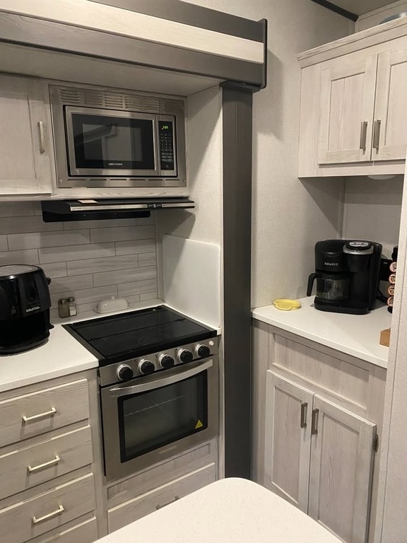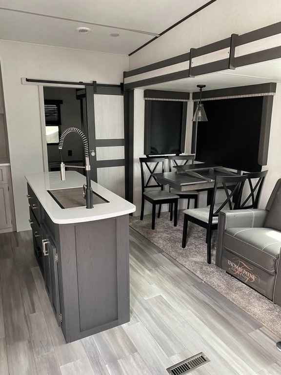 This Keystone has an overall length of 42 feet and comes equipped with 4 power retractable slide-outs, 1 power retractable 17’ awning, exterior kitchen, bunkhouse and plenty of room to sleep 8. This unit has been well-maintained.