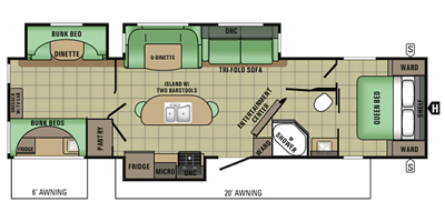 Bed in Master, 3 Bunks in Rear Bunkhouse, Convertible Sofa, And U-Shaped