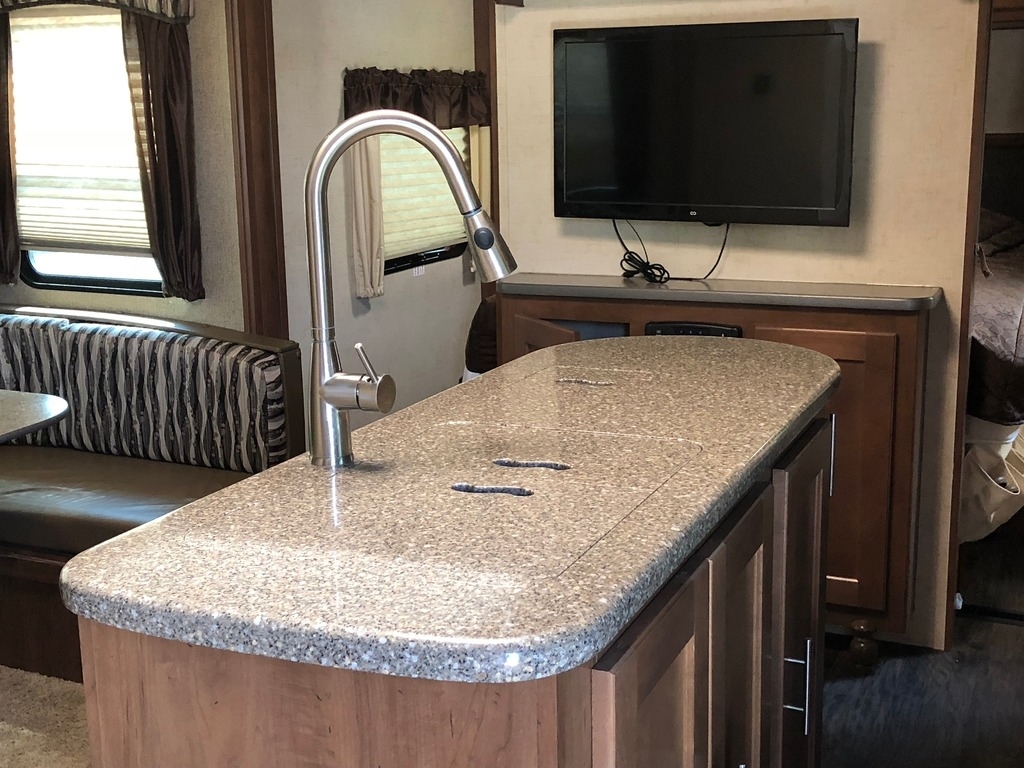 is 26 feet and comes with a Queen Size Bed, has 2 Slide Outs and sleeps 4. This is a non-pet/non-smoking RV and there