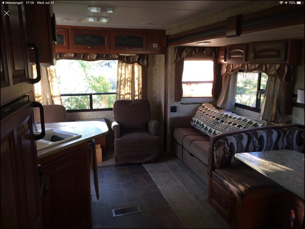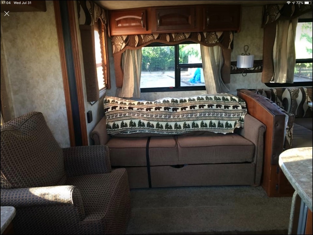 This Trailer is in great condition, master bedroom features a new queen bed and new mattress, hide a bed pull out couch and the dinette converts into a bed.