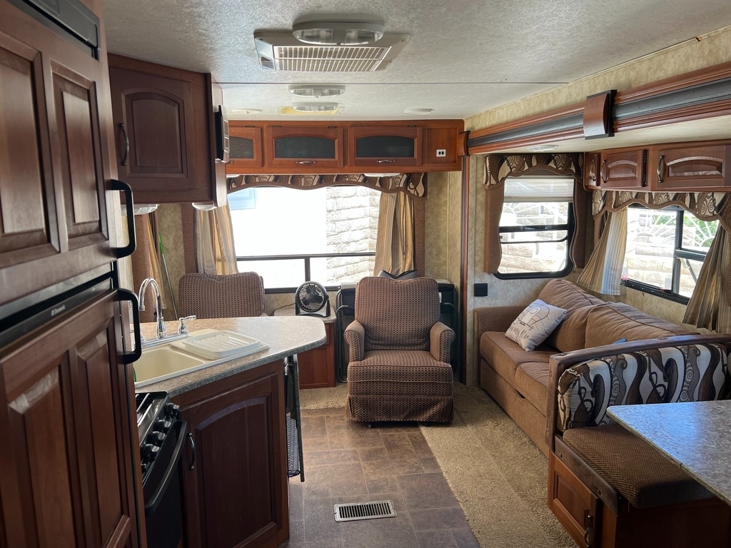 This 2014 Keystone has an overall length of 30.5 ft and Comes Equipped with 1 Slide Out, 1 Awning, and Room to Sleep 6.