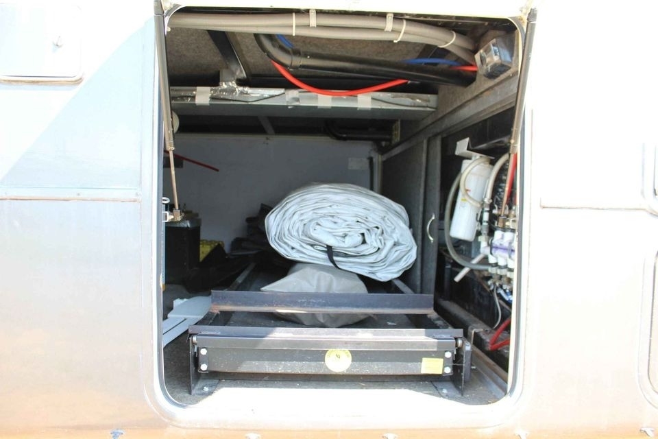 slide-outs, 2 roll-up canopy porches, custom-made canvas skirting, new alternator/charger.
