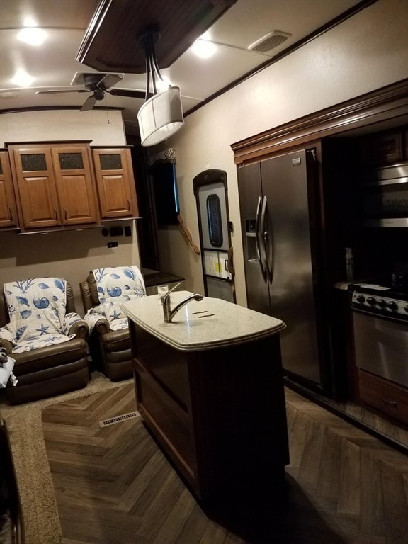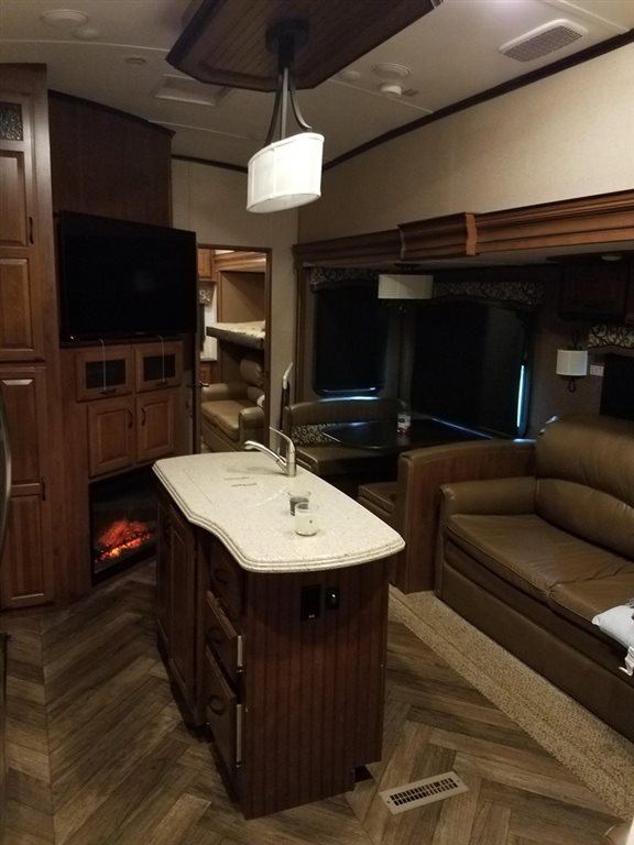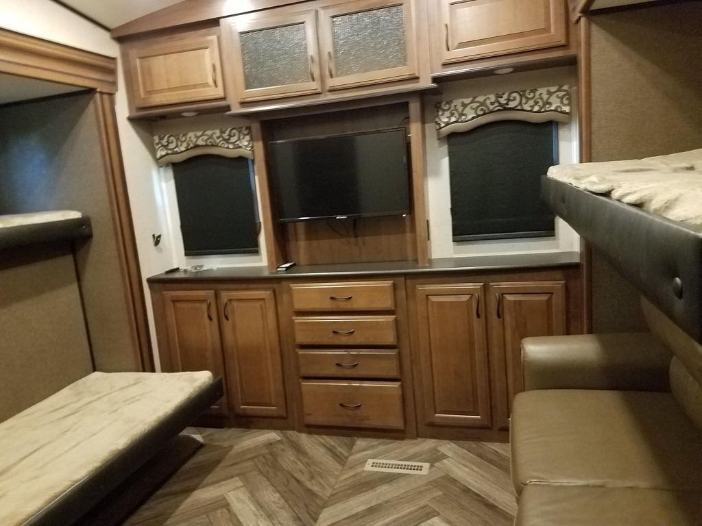 This 2016 Jayco North Point 375BHFS has an Overall Length of 43 Feet and Comes Equipped with 5 Slide Outs, an Awning with LED, 2 A/C Units, and Sleeps 10. It is Shown in a Cream Exterior with a Beige Interior. This is a Non-Smoking Fifth Wheel and has Not Been in Any Accidents or Had Any Water Damage.