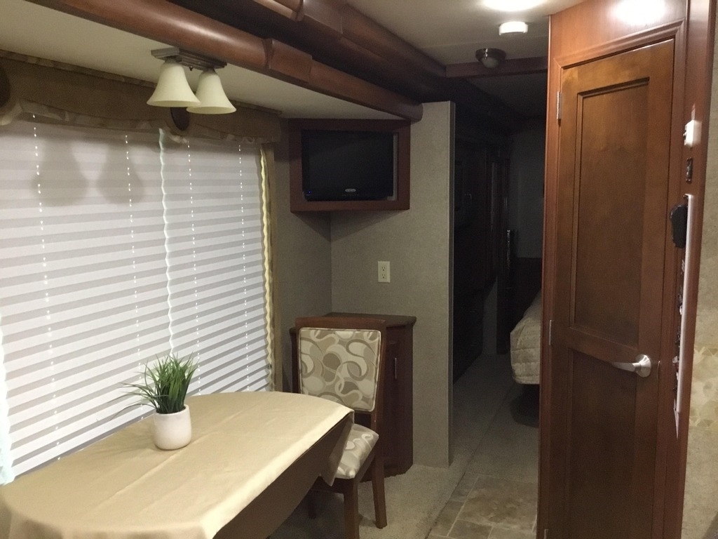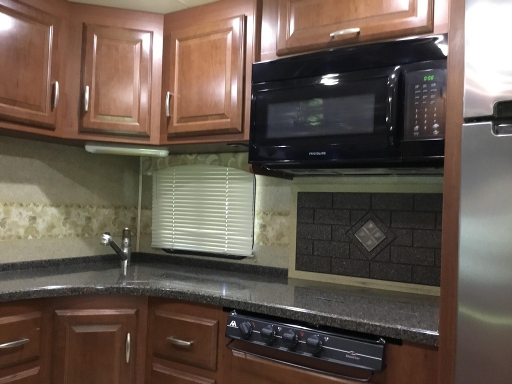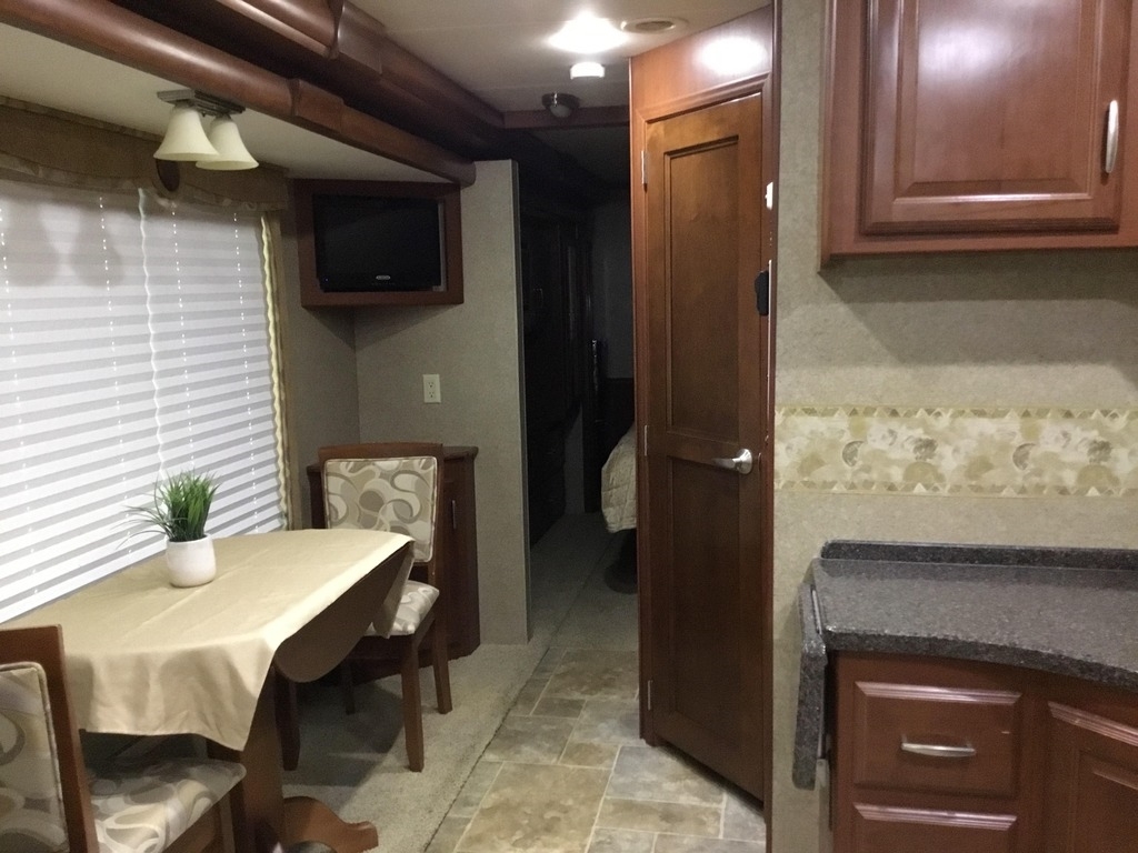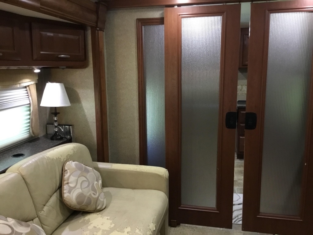 This Thor is powered by a 6.8L V10 engine and a 5-speed automatic transmission with 16,881 miles. The overall length is 37.83 feet and comes equipped with 3 power-retractable slide-outs, a 13-foot power retractable awning, 2 A/C units, a generator, a fireplace, and room to sleep up to 4. This unit has been well-maintained.