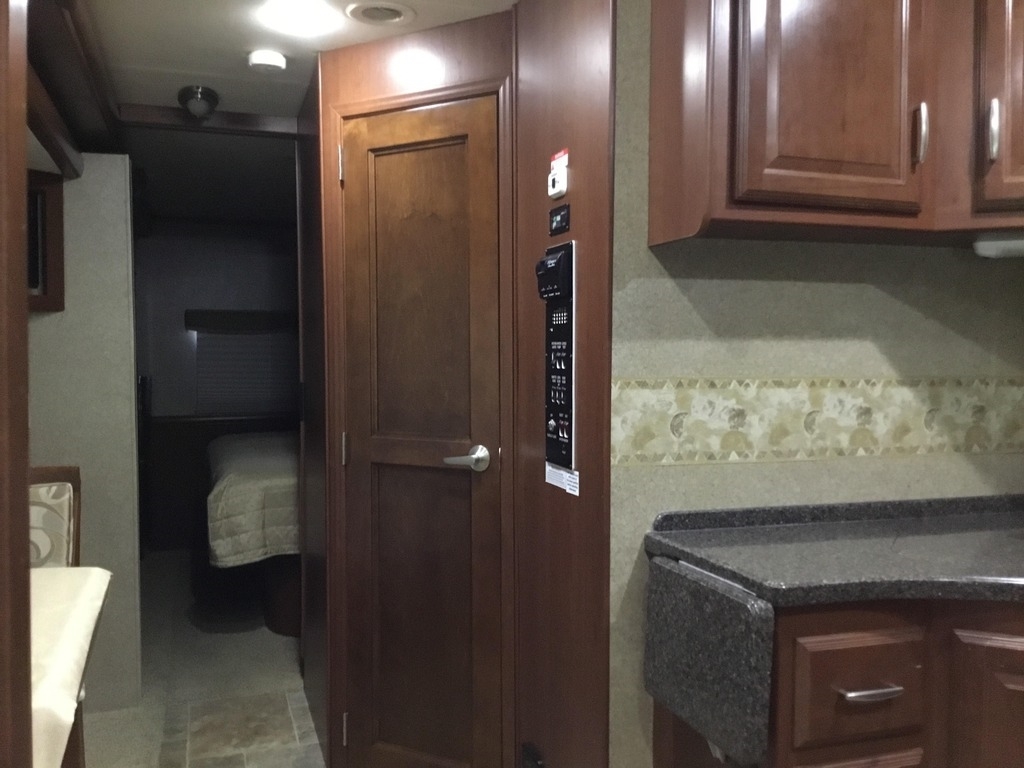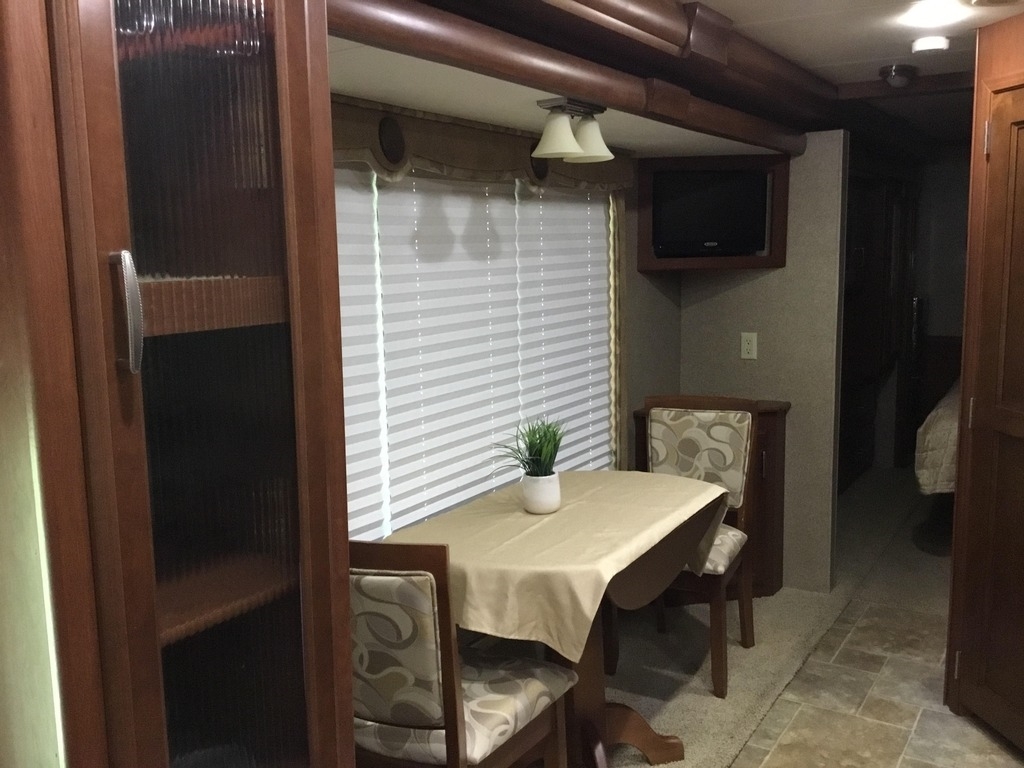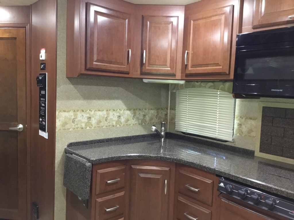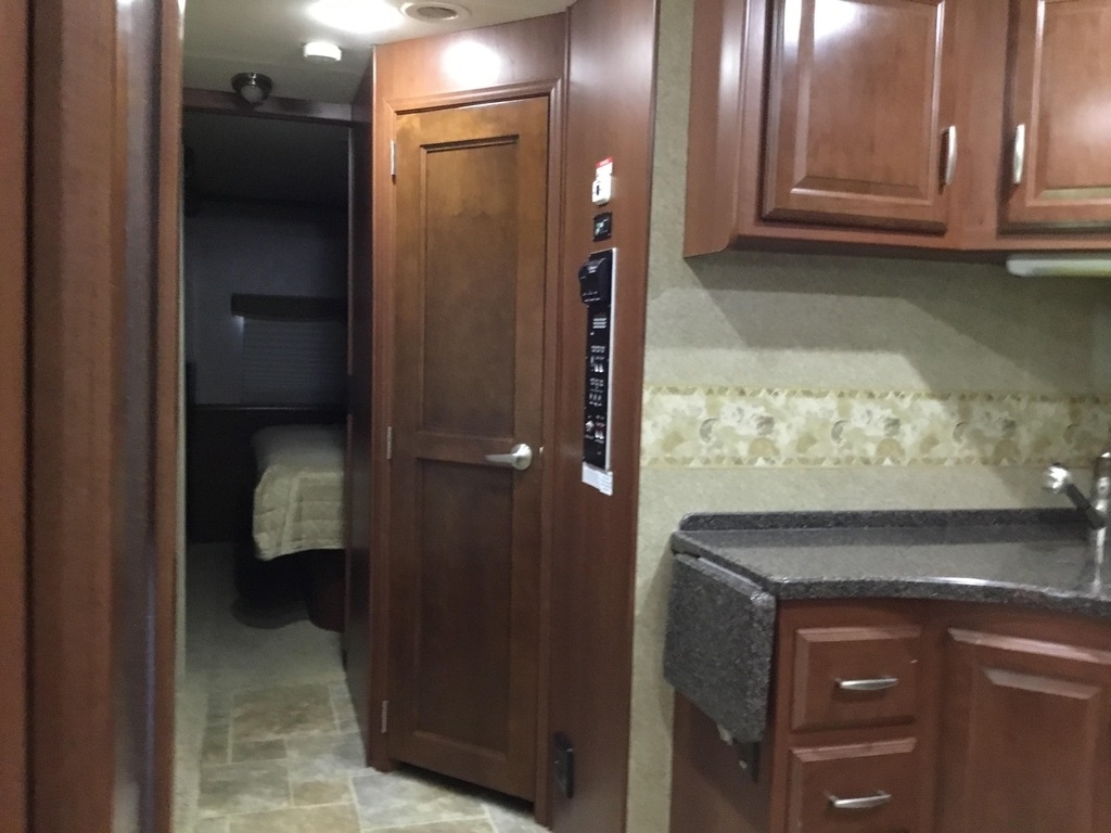 This Thor is powered by a 6.8L V10 engine and a 5-speed automatic transmission with 16,881 miles. The overall length is 37.83 feet and comes equipped with 3 power-retractable slide-outs, a 13-foot power retractable awning, 2 A/C units, a generator, a fireplace, and room to sleep up to 4. This unit has been well-maintained.