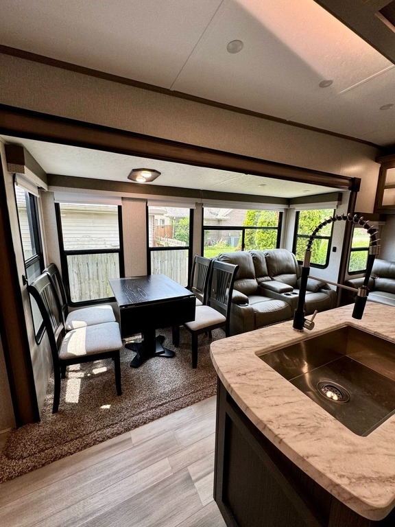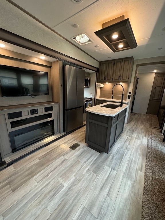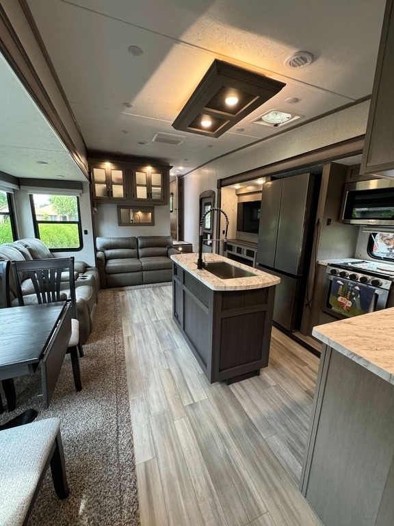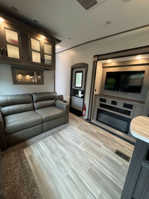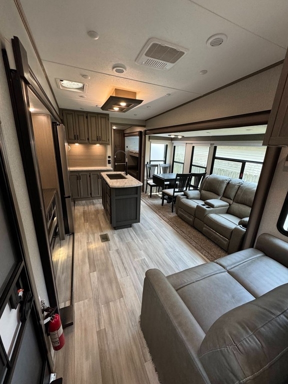 equipped with 5 power retractable slide-outs, 1 power retractable awning, A/C,
