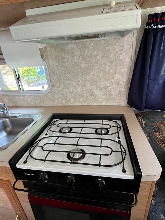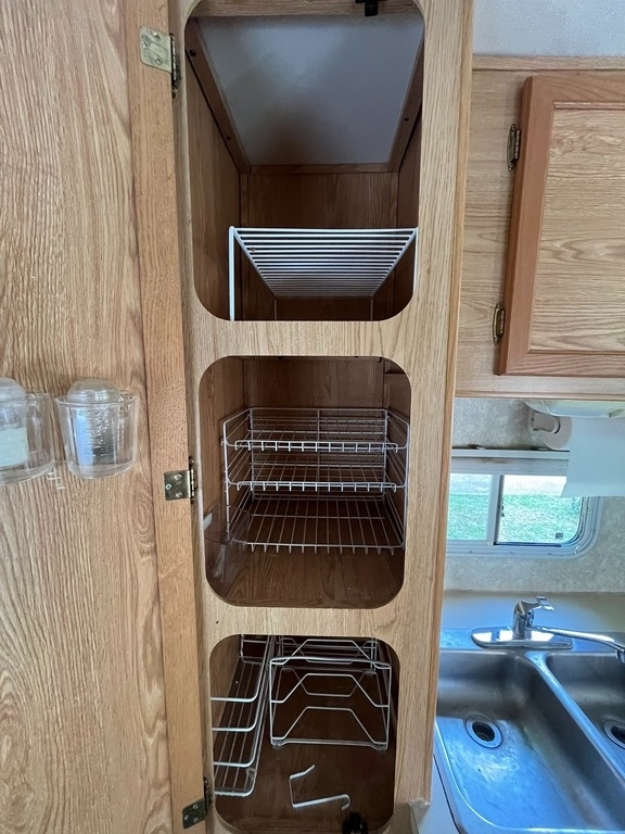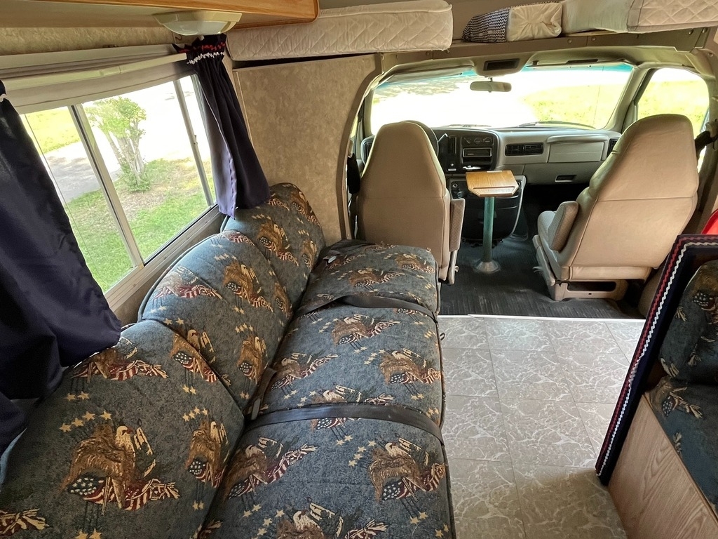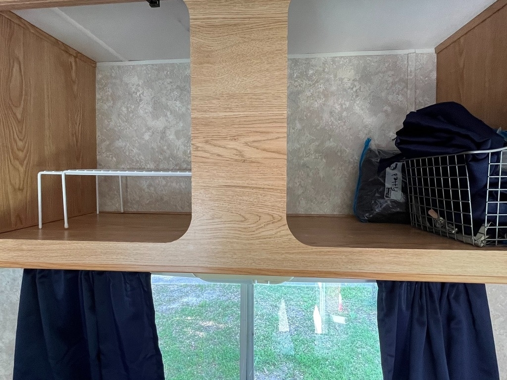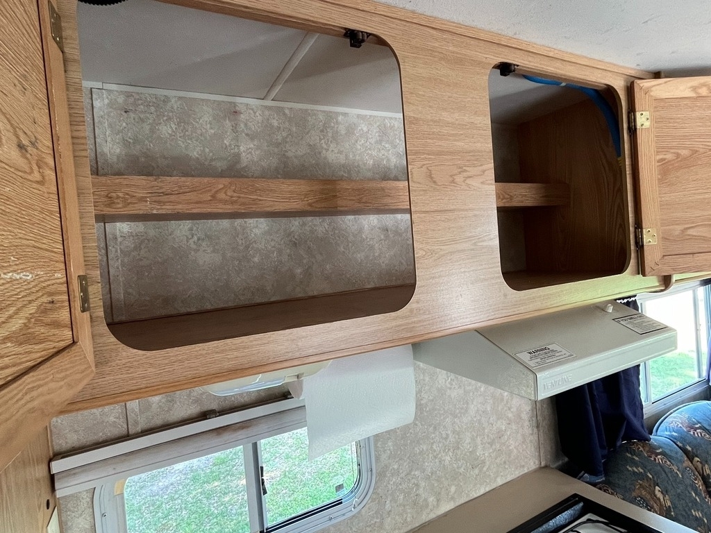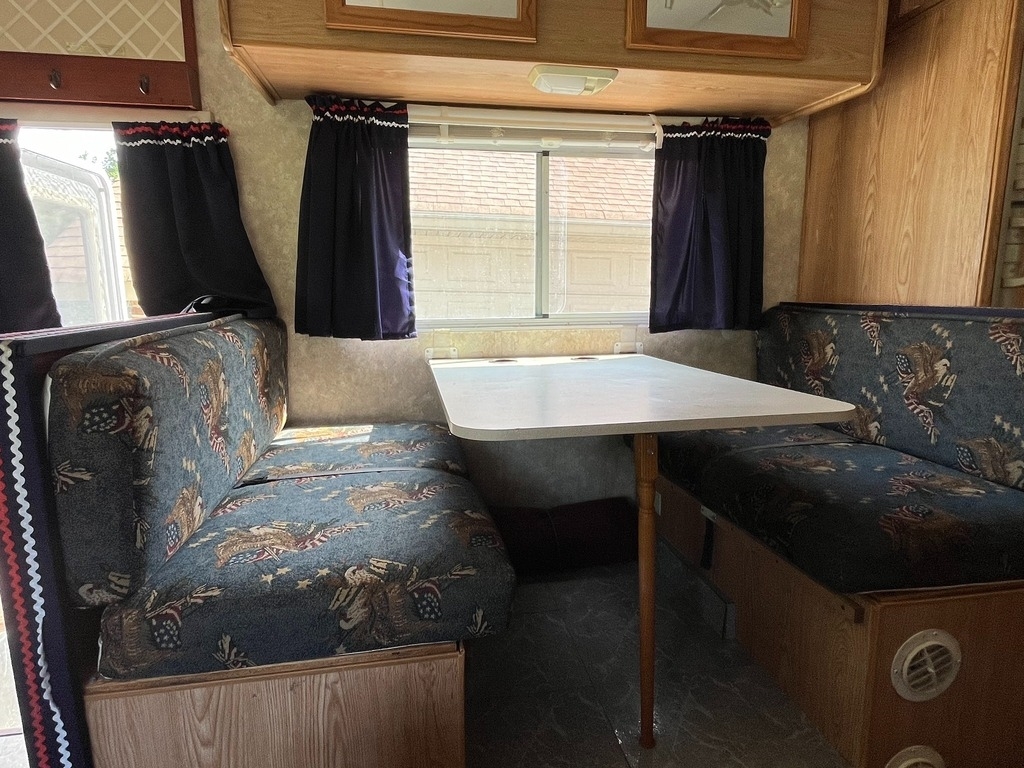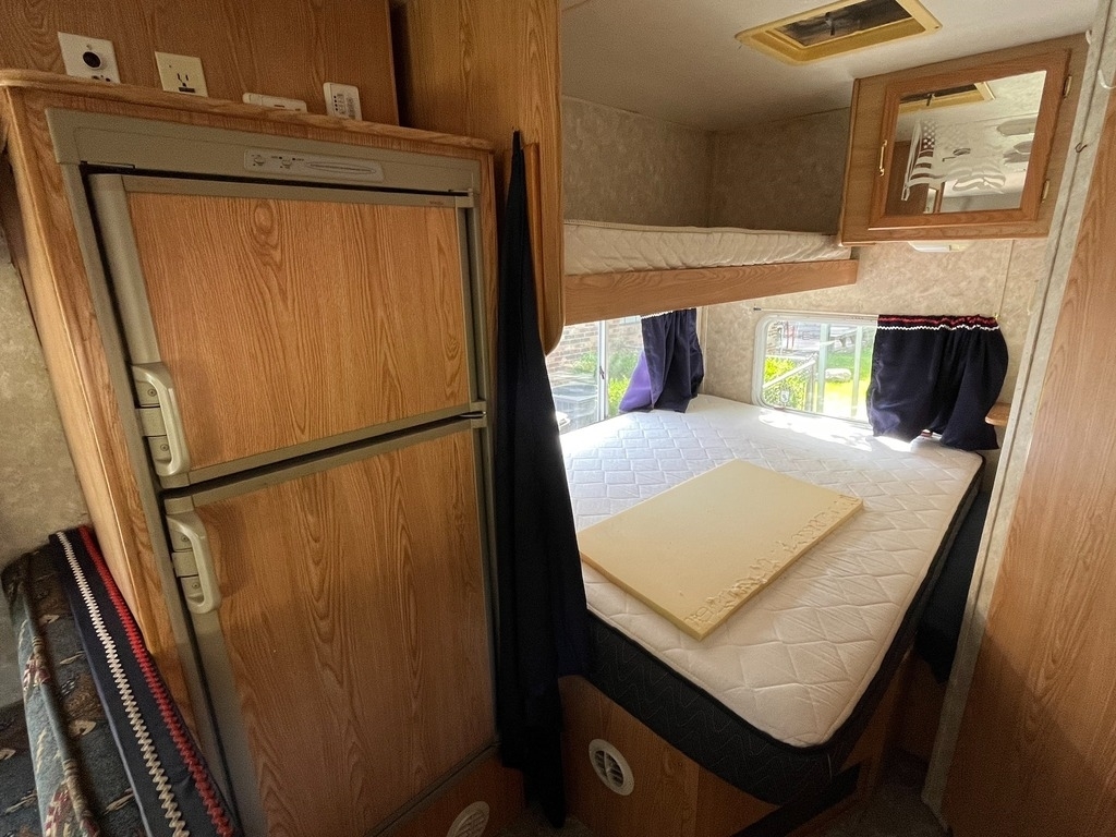 Full bath, AC, fresh water tank, plenty of storage and room to sleep 8.
