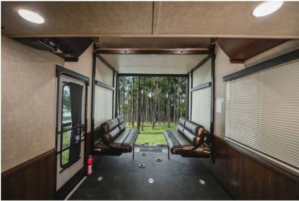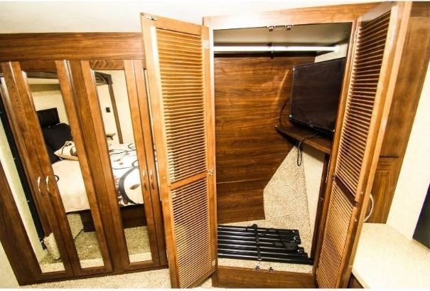 Extras also included: King Tempur-pedic Matterss, Queen Mattress Topper for Drop-down Bed Winguard Satellite 3rd AC, Rear Patio with Electric Drop-down Screen for Garage Fantastic Fan in Kitchen