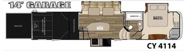 4114 Cyclone Package: 5.5 Onan Generator with Auto Start Triple Axle, 7000 lb. Dexter Axles, G Rated Tires, Correct Track Alignment, Hydraulic 6 pt Auto Leveling, 16 inch Aluminum Wheels, Solar Prep, Rear Camera Prep, Canadian Arctic Package with Enclosed and Heated Underbelly, 18 cu ft Refer, 20 Gallon Water Heater, 3x15 BTU AC/Heater, Fireplace, 50 AMP Service, Hidden Hinges, Solid Surface Counter-tops, Dark Tinted Max Vent Windows, 1 inch Thick Insulated Slam Storage Doors with Full Screen Doors, 14 ft. Garage with Garage D-Rings, Sliding Glass Door between Living Area and Garage, 1 Piece Full Size Fiberglass Shower, 3 Electric Side Awning with LED Lighting, Dirt Devil Central Vacuum, Stainless Steel Appliances and Hardware, 30 Gal Fuel Station and Timer, Universal Dock Center, 32 inch Bedroom TV, 58 inch LCD TV, Separate AM/FM Stereo w/CD/DVD/MP3 in Garage w/ Exterior Speakers, 5.1 Digital Dolby Surround Zone Entertain System with Bluetooth and BlueRay, Rear Screen, EZ Flex Suspension, LP Quick Connect, Battery Disconnect, Washer/Dryer Prep, Rear Electric Queen Beds w/ Convertible Sofa, Queen Drop-down Bed, Twin Size Loft Bed, LED Lighting, Basset High End Residential Furniture with Massage Recliners, with USB and outlets, Full Body Paint, Lots of storage inside and out.