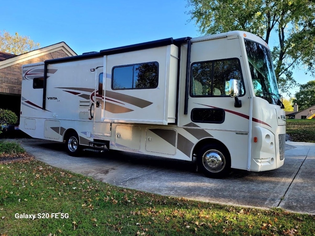 This Vista is powered by a Triton V10 Engine paired with a 6 Speed Automatic transmission with 23,100 miles. The overall length is 31ft and it comes equipped with 3 Slide Outs, 1 Awning, 1 AC Unit and Room to Sleep 7.