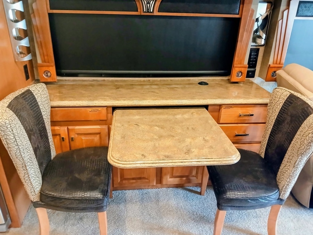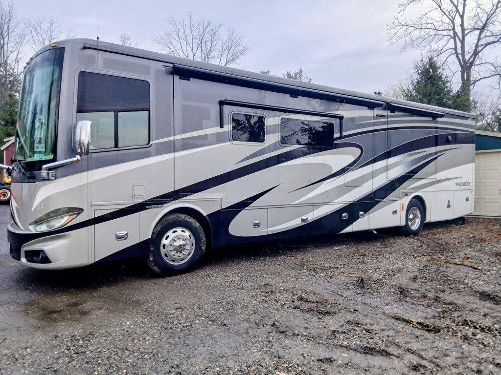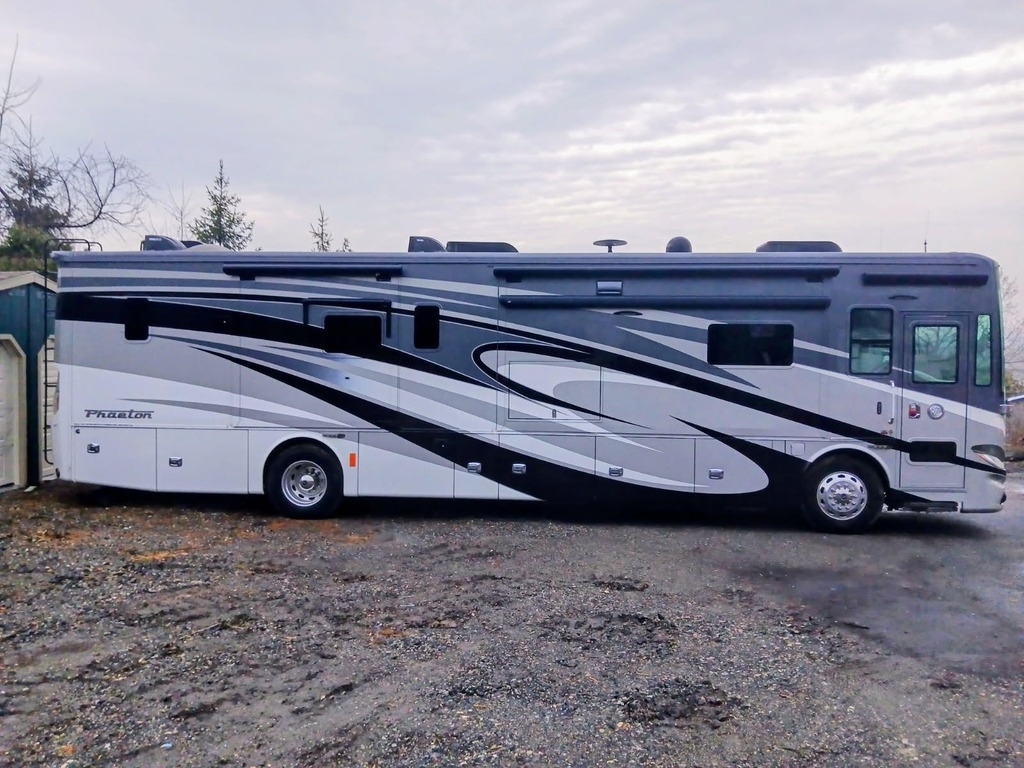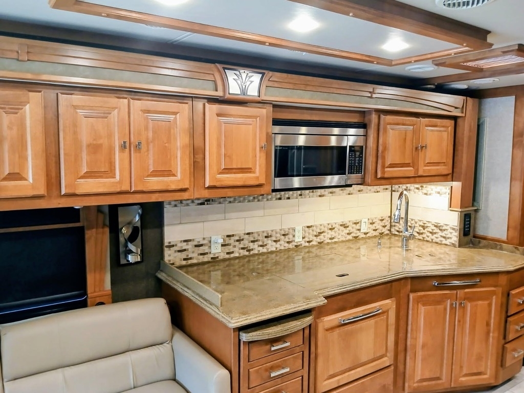 This Tiffin has an overall length of 41.33 feet and comes equipped with 4 power retractable slide-outs, 1 power retractable awning, a generator, and plenty of room to sleep 6. This unit has been well-maintained.